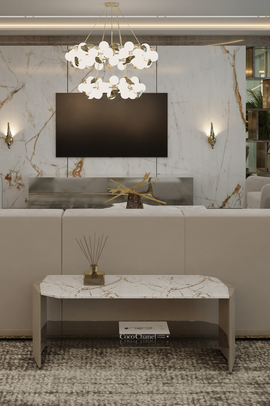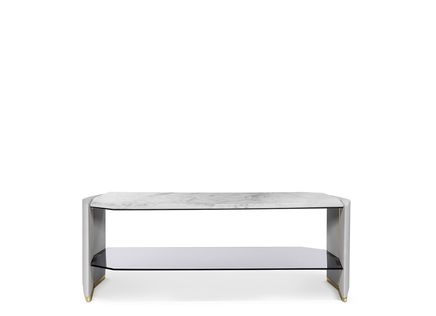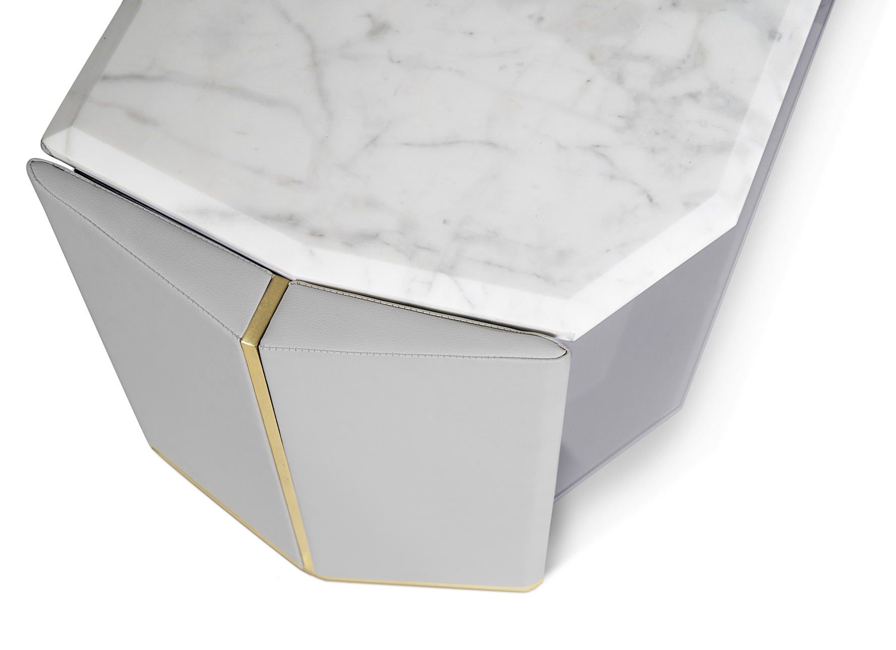 Body: Polished Brass, Gray Leather & Statuário Marble