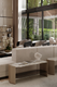 Made of the finest materials that exude sophistication and distinction, the Algerone Long Side Table upholds the classical appeal of the Algerone collection. Its marbleized top and leathery contours draw the attention of its beholders, easily becoming the detailed piece that any living room set needs.