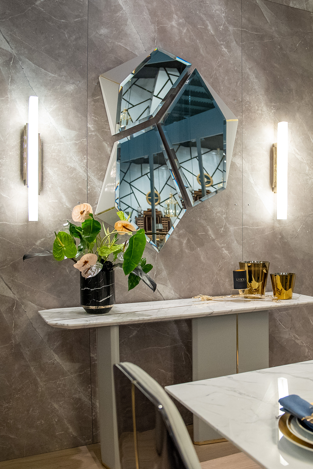 Body: Polished Brass, Eucalipto Frise Veneer & Smoked Black Mirror