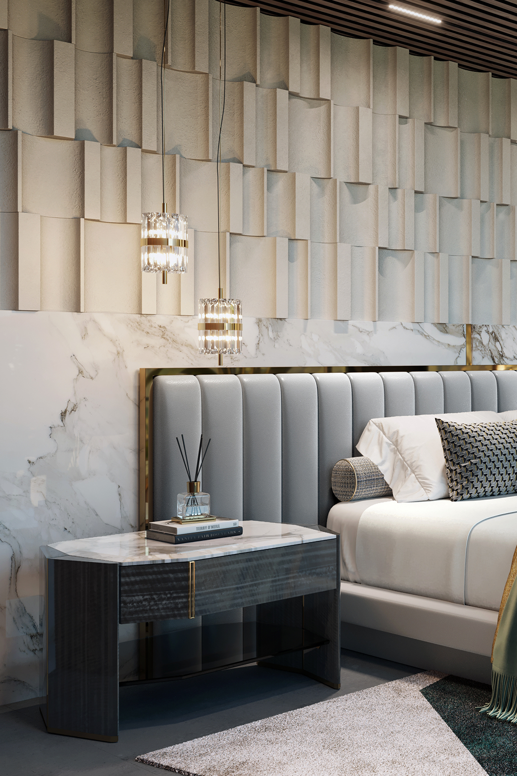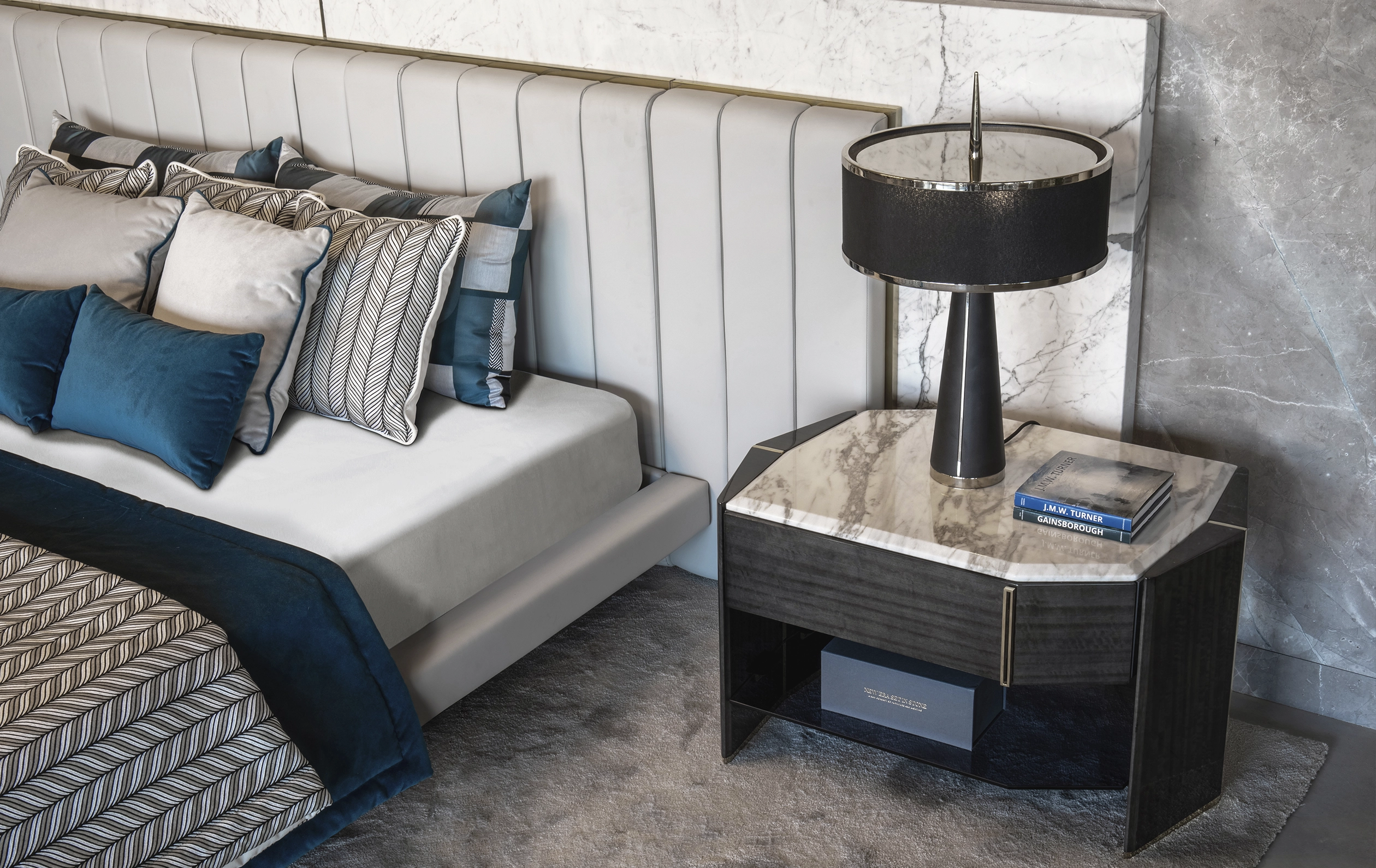 The Algerone Nightstand showcases the distinctive strength and elegance that only marble can offer, bringing a touch of modernity to any bedroom design. With its sleek features and geometric lines, this bedside table serves as the perfect choice, featuring a marble countertop that enhances the overall aesthetic.