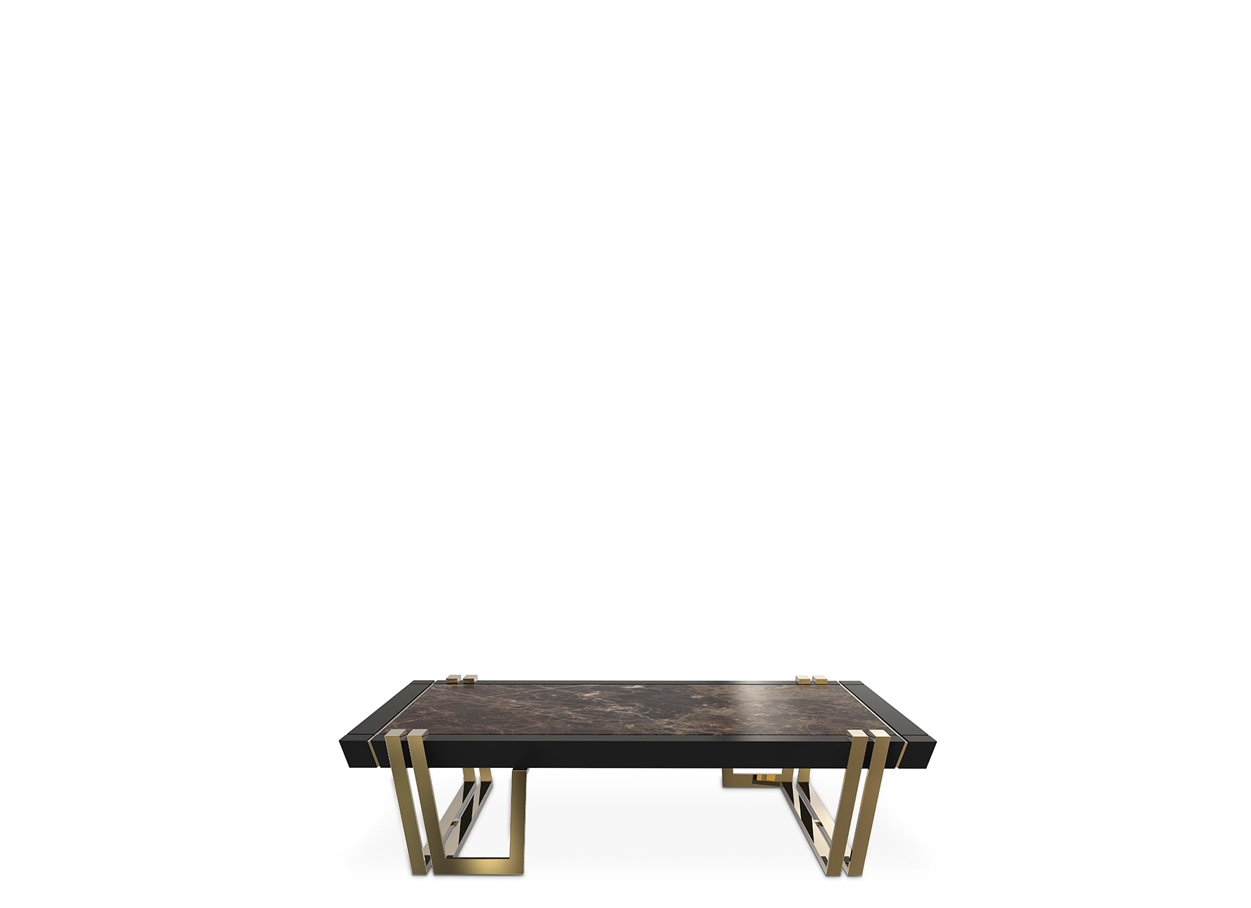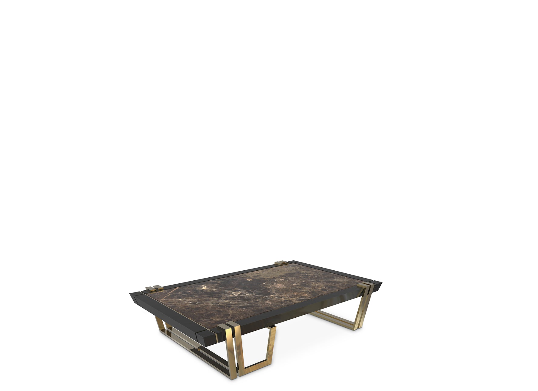 The Apotheosis Center Table embodies sophistication and exclusive design, revolutionizing any space with its remarkable presence. The splendid harmony of premium materials such as polished brass, black lacquer, and Emperador dark marble creates a unique and remarkable atmosphere in any interior decor.