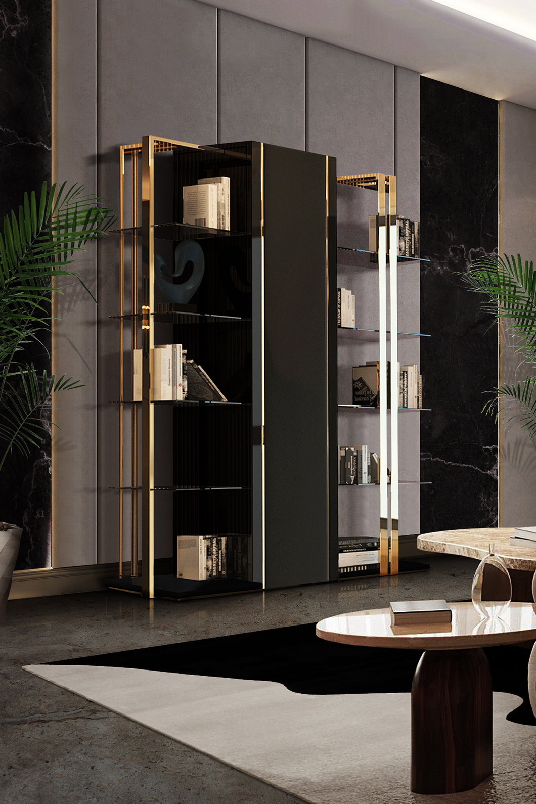 The Apotheosis Bookcase is a true anthem to sophistication and design. Inspired by Greek mythology, its sleek, straight lines make it a magnificent creation and an exclusive design piece, perfect for office spaces and luxurious living rooms.