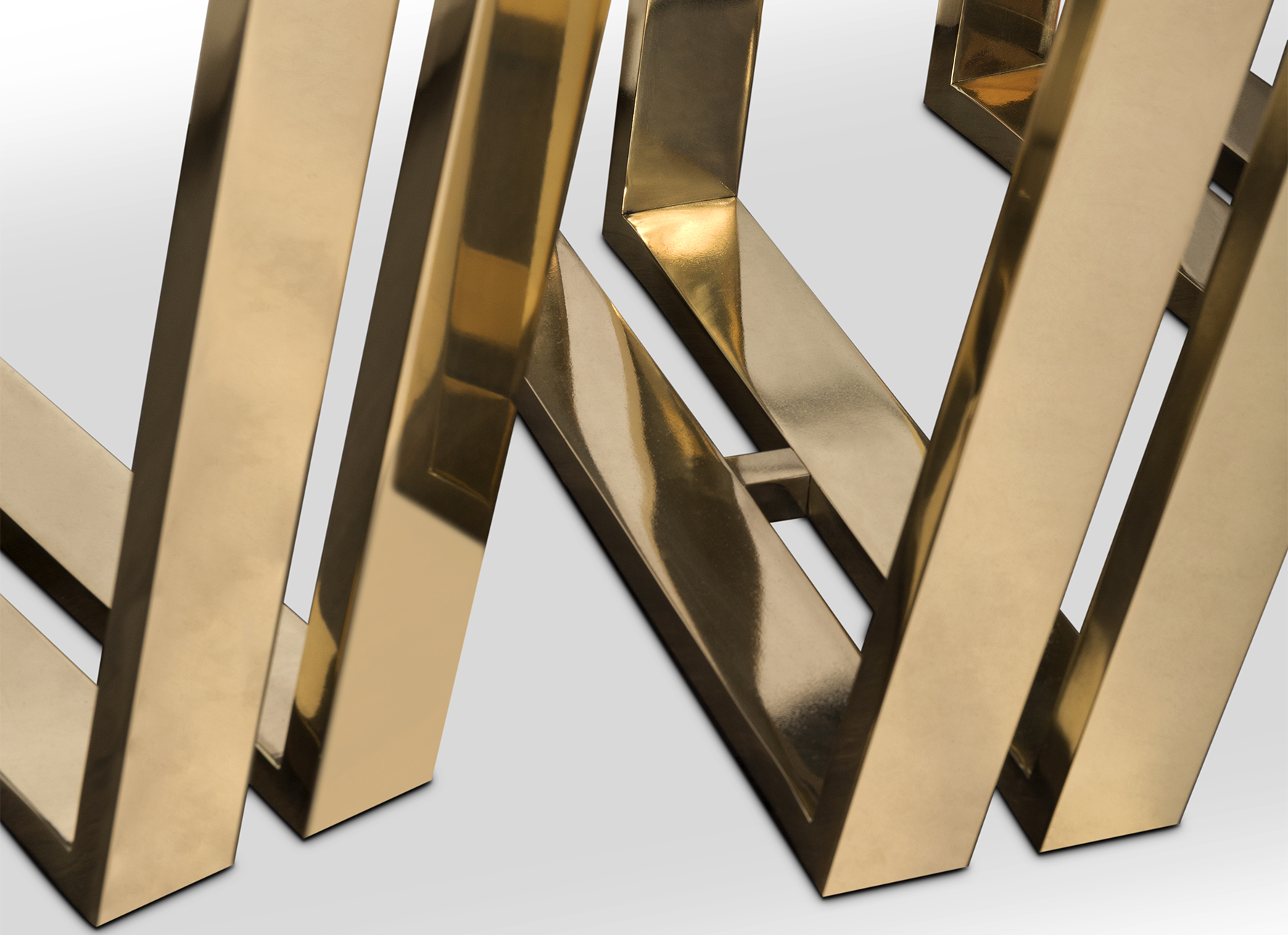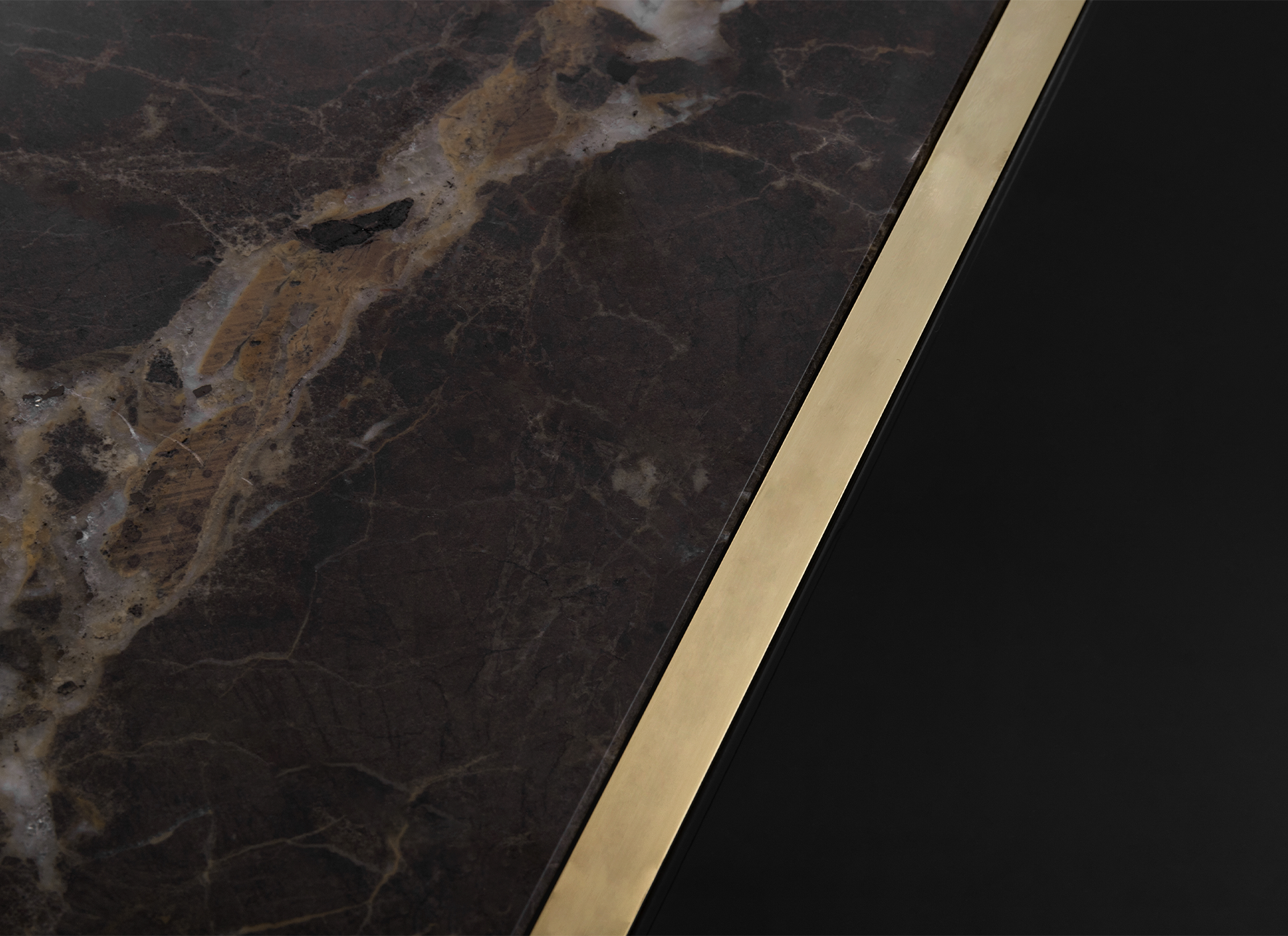 Inspired by Greek mythology, the Apotheosis Dining Table glorifies design and innovation. The polished brass legs lend an unusual and chic effect, supporting a top crafted from marble and wood. This combination and design reflect the elevation of earthly elements to a godlike stature, defining perfection. With its exquisite craftsmanship, this marble dining table is the ultimate luxury addition to any modern dining room.