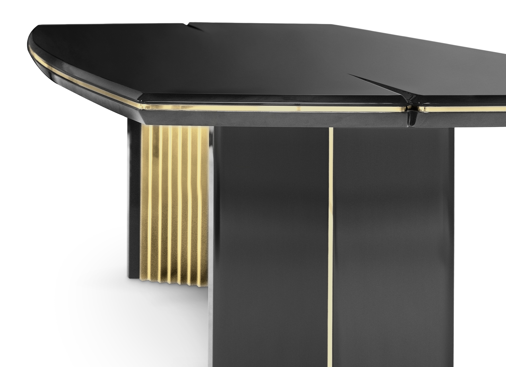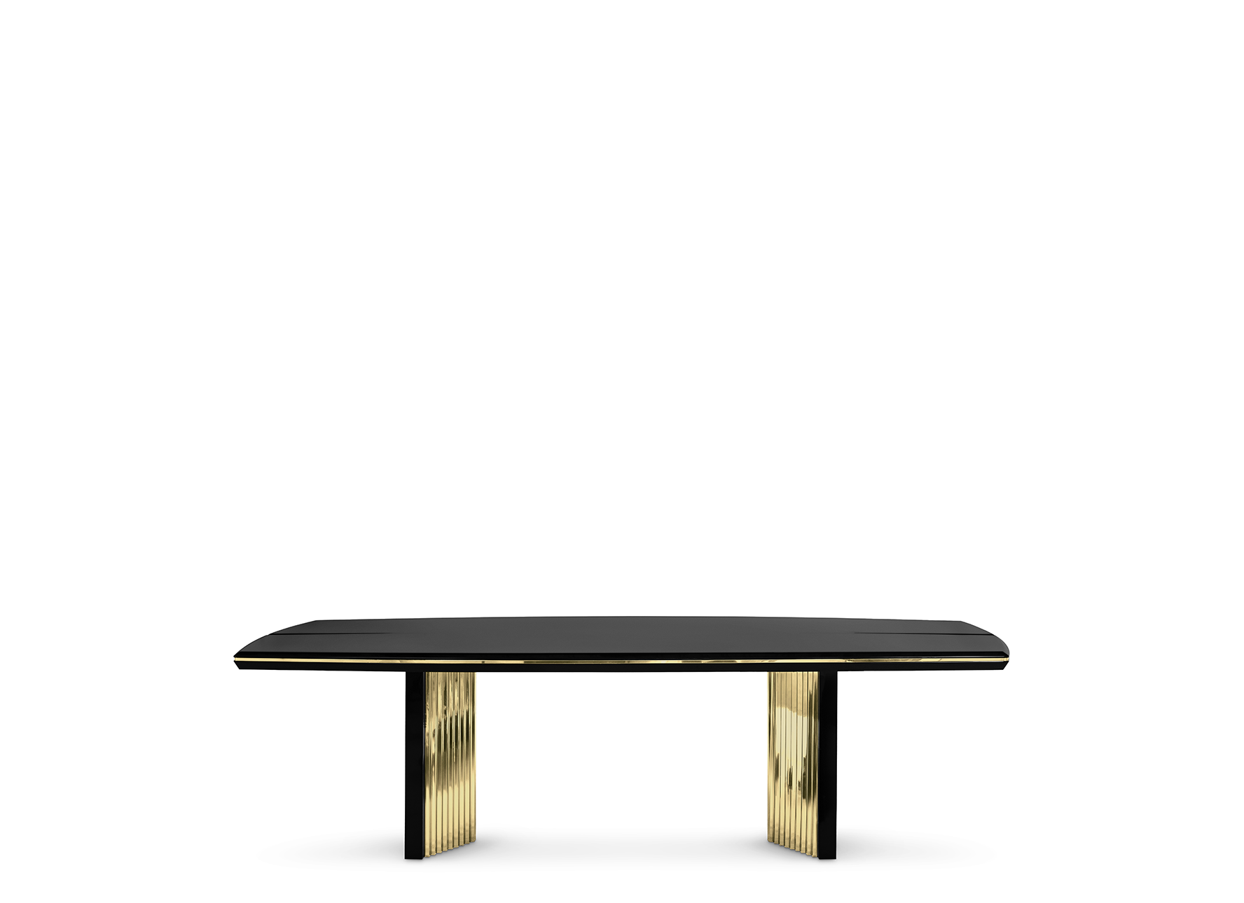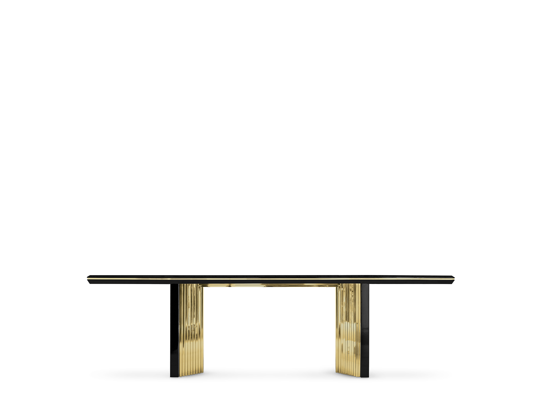 The Beyond Dining Table features distinctive details that delicately combine hand-worked wood with touches of polished brass, creating a warm and golden tone on its polished surface. Created during a moment of inspiration, this modern luxury dining table serves as the perfect focal point for any dining setting.
