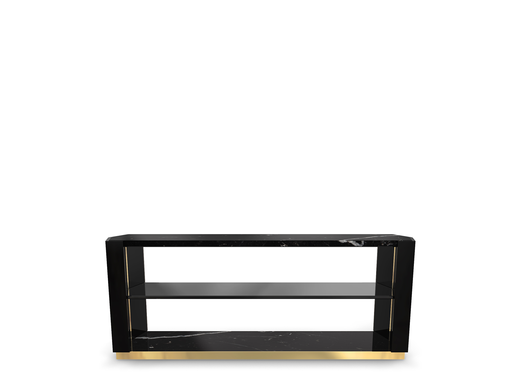 Body: Polished brass, Smoked glass, Black lacquer & Nero marquina marble