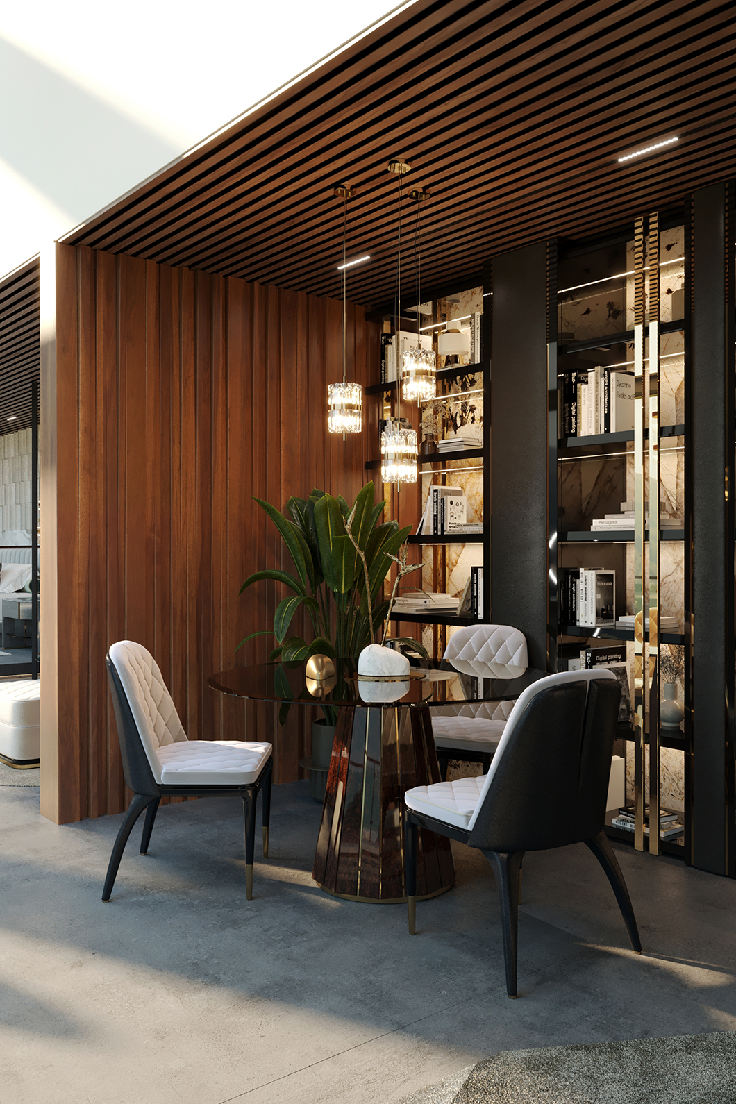 With brass, leather, wood, and soft velvet, the Charla II Dining Chair exudes timeless elegance, making it the perfect addition to a luxurious dining room set. This chair combines luxury and comfort, becoming a standout piece in the Charla collection.