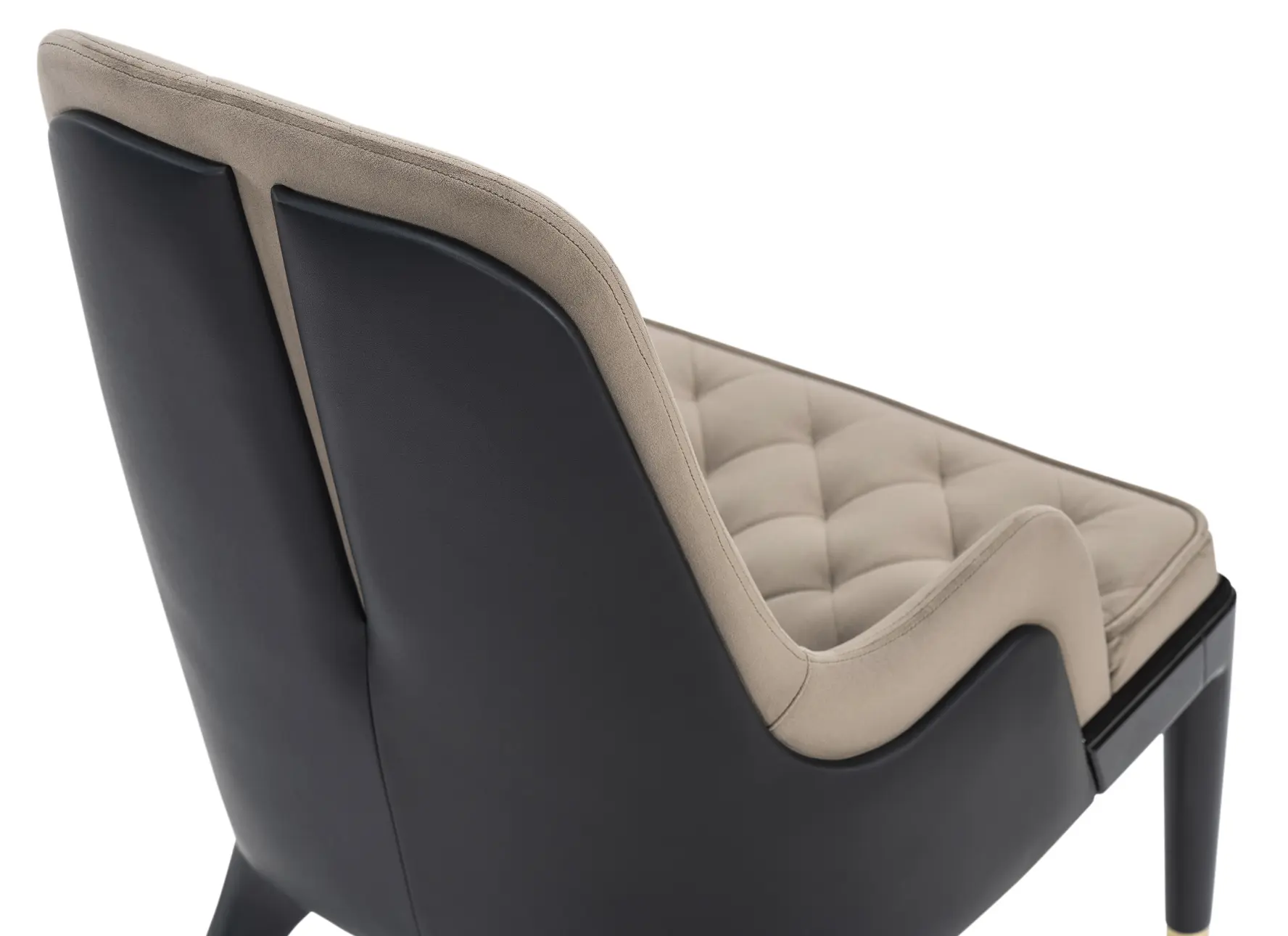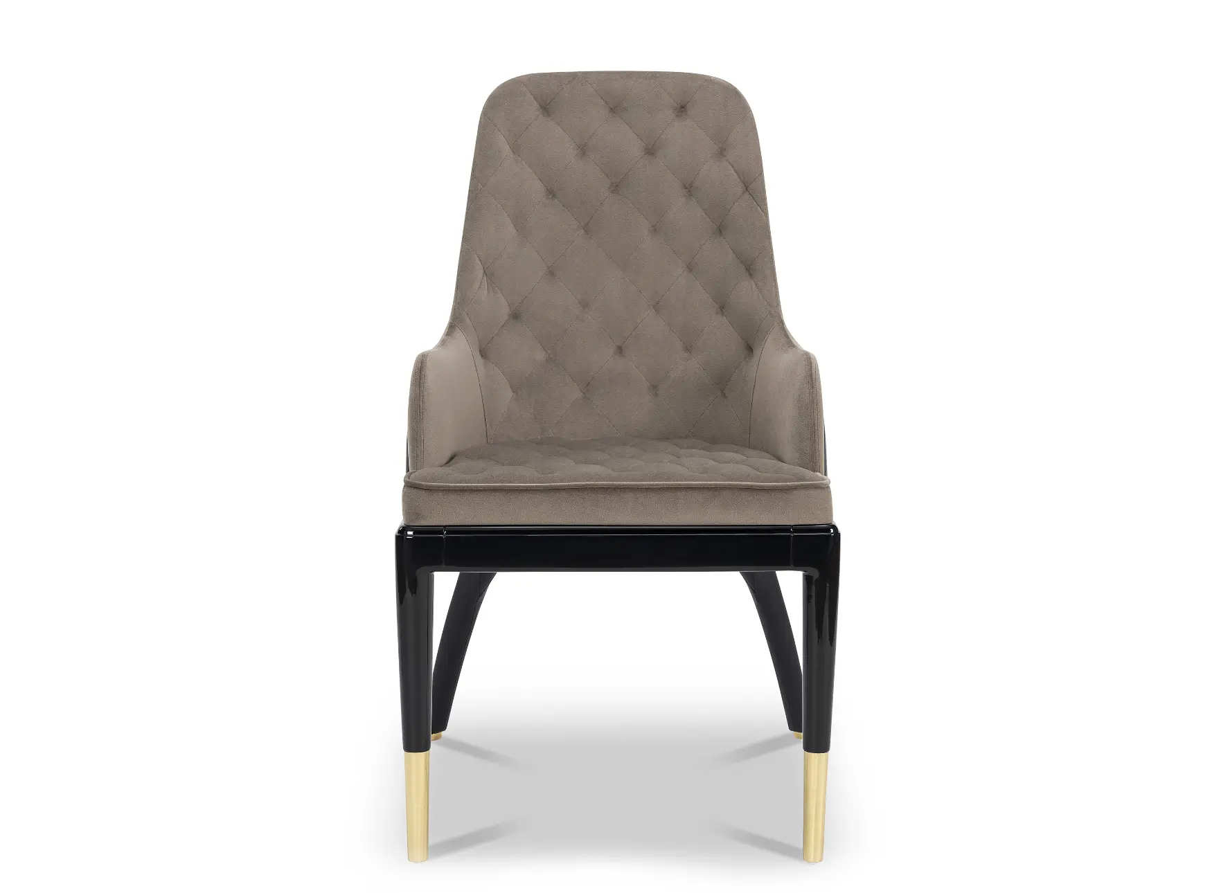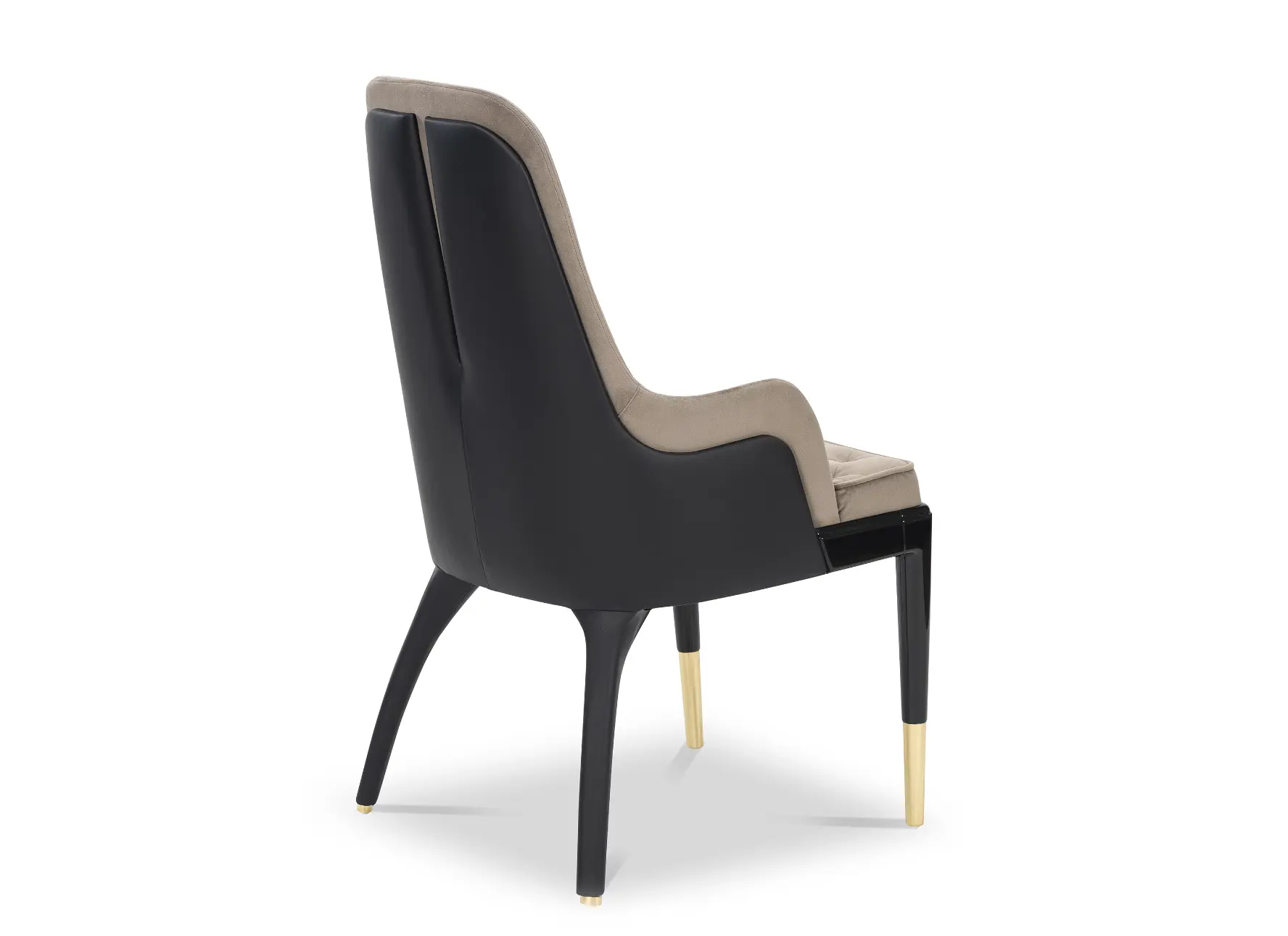 With an even more imperial shape, the Charla King Dining Chair portrays a powerful design with luxury finishes. Made of brass, leather, and velvet, this is the ideal chair for a lavish dining room. Blending luxury and comfort into one, it is a focal piece in the Charla collection.