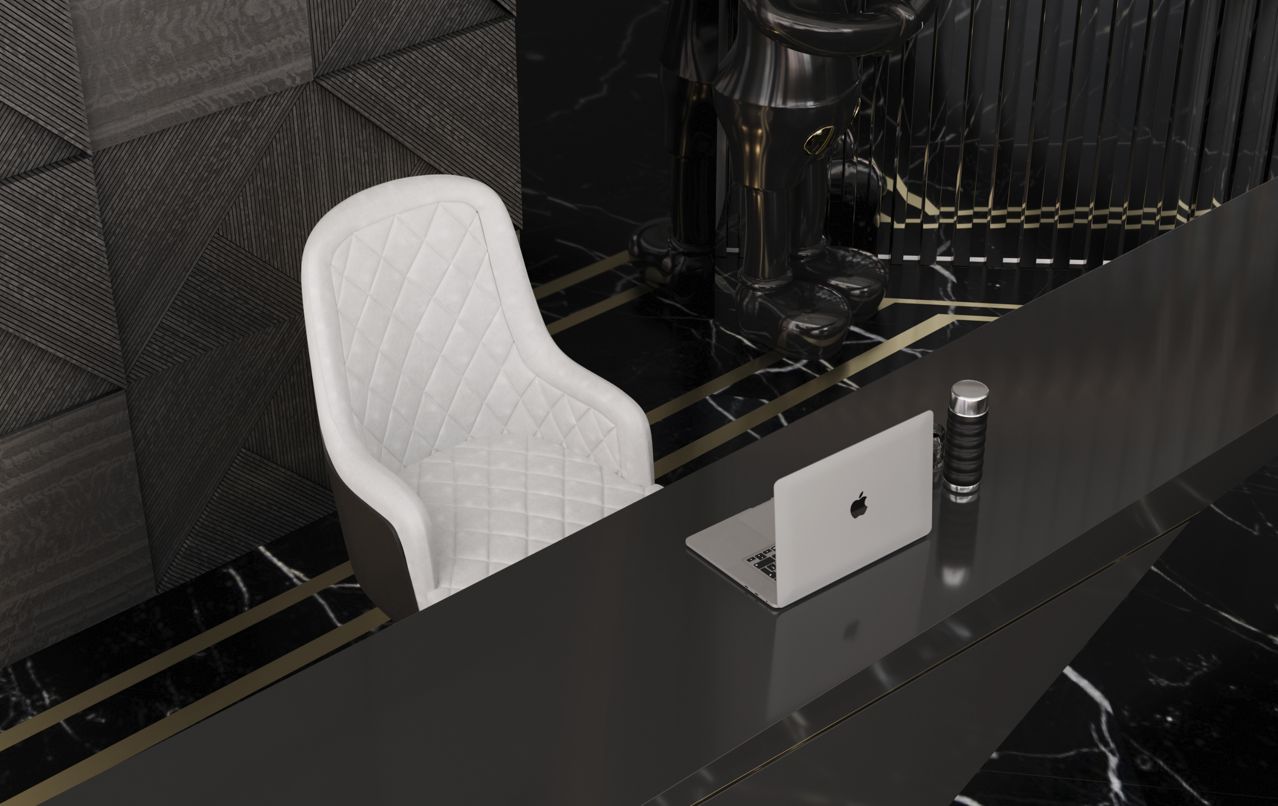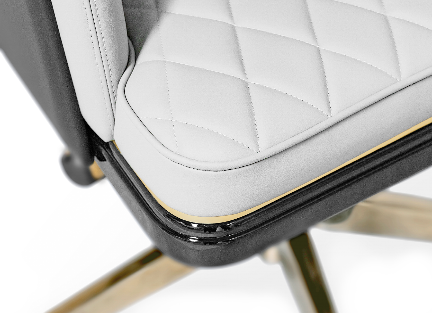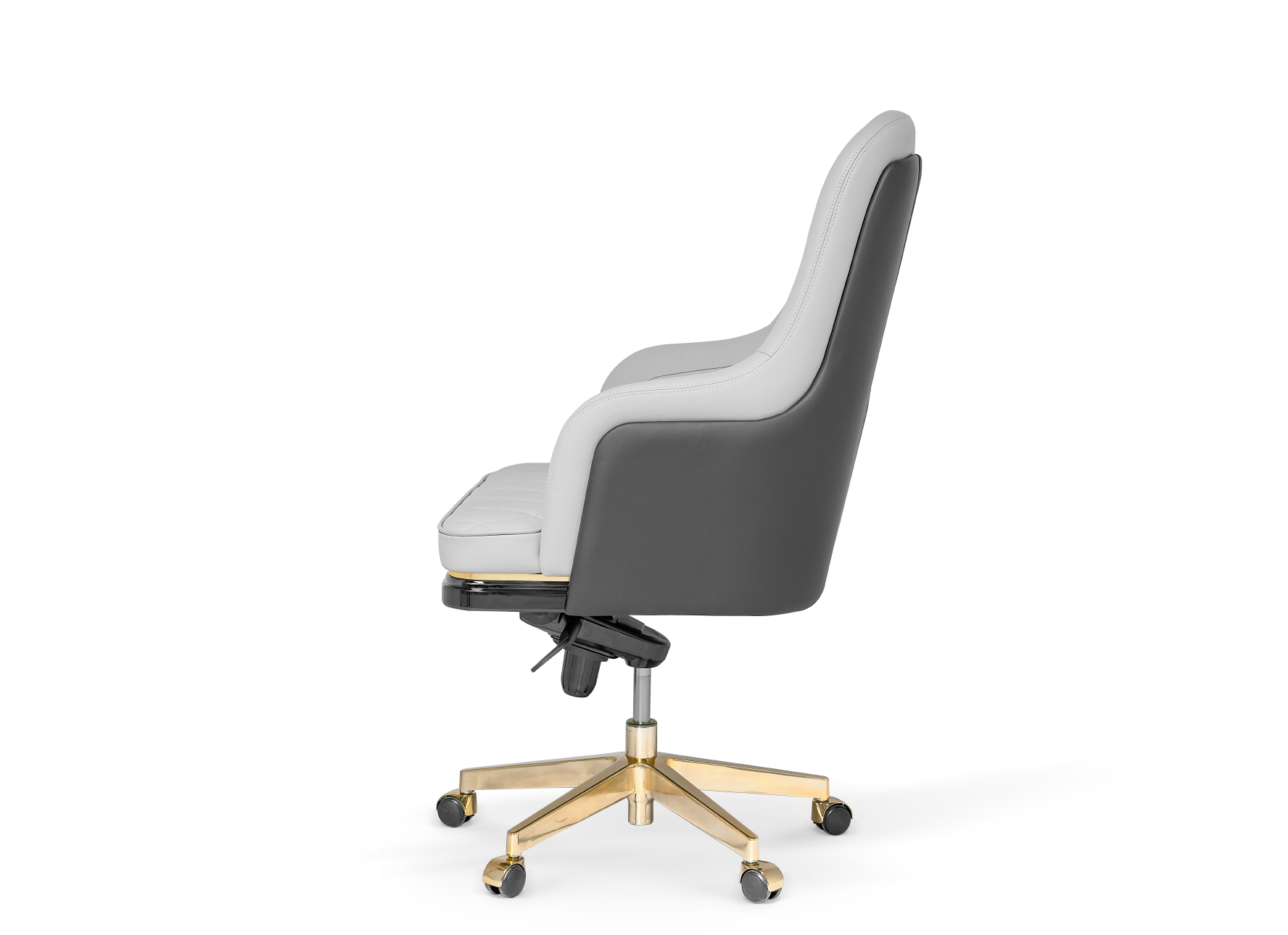 Body: Polished Brass, Black Lacquer, Black Leather & Gray Leather