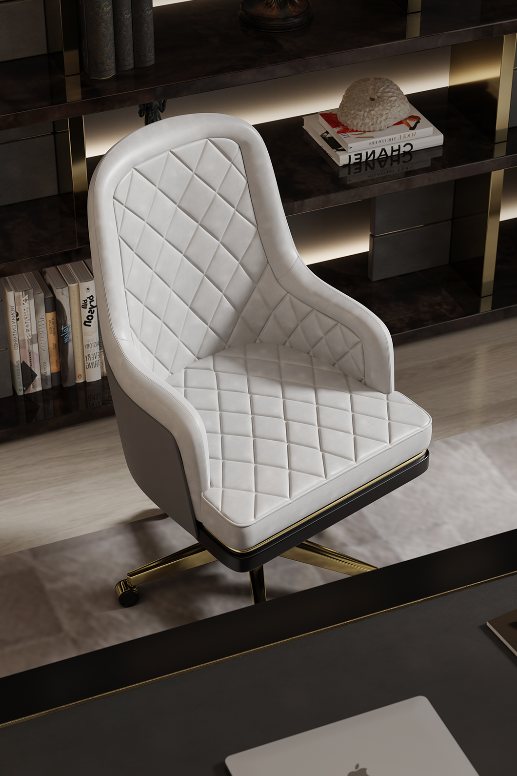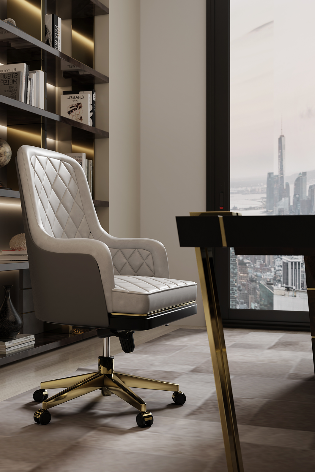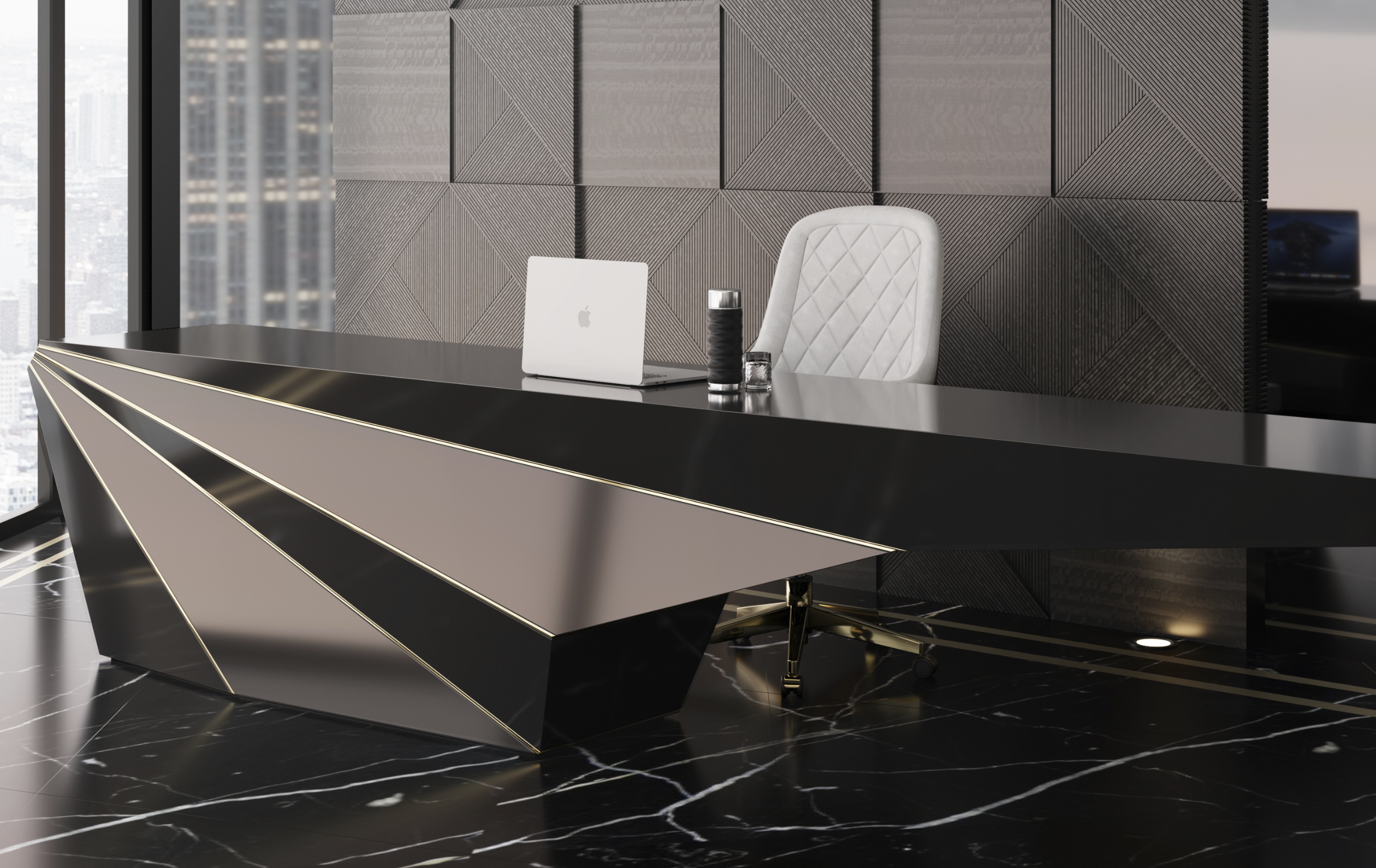 Body: Polished Brass, Black Lacquer, Black Leather & Gray Leather