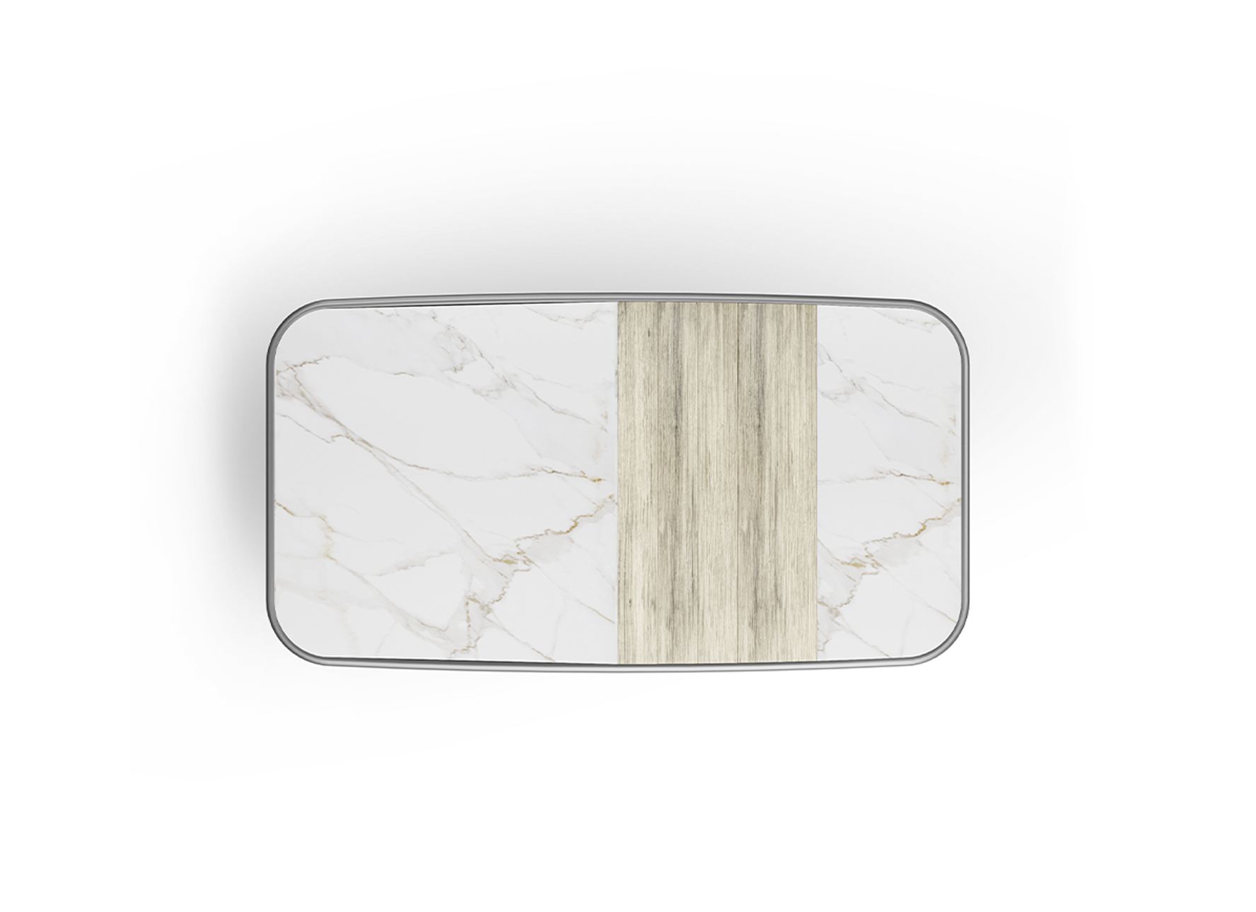 Carbon Powder Coating, Teka Wood & Calacatta Gold Marble