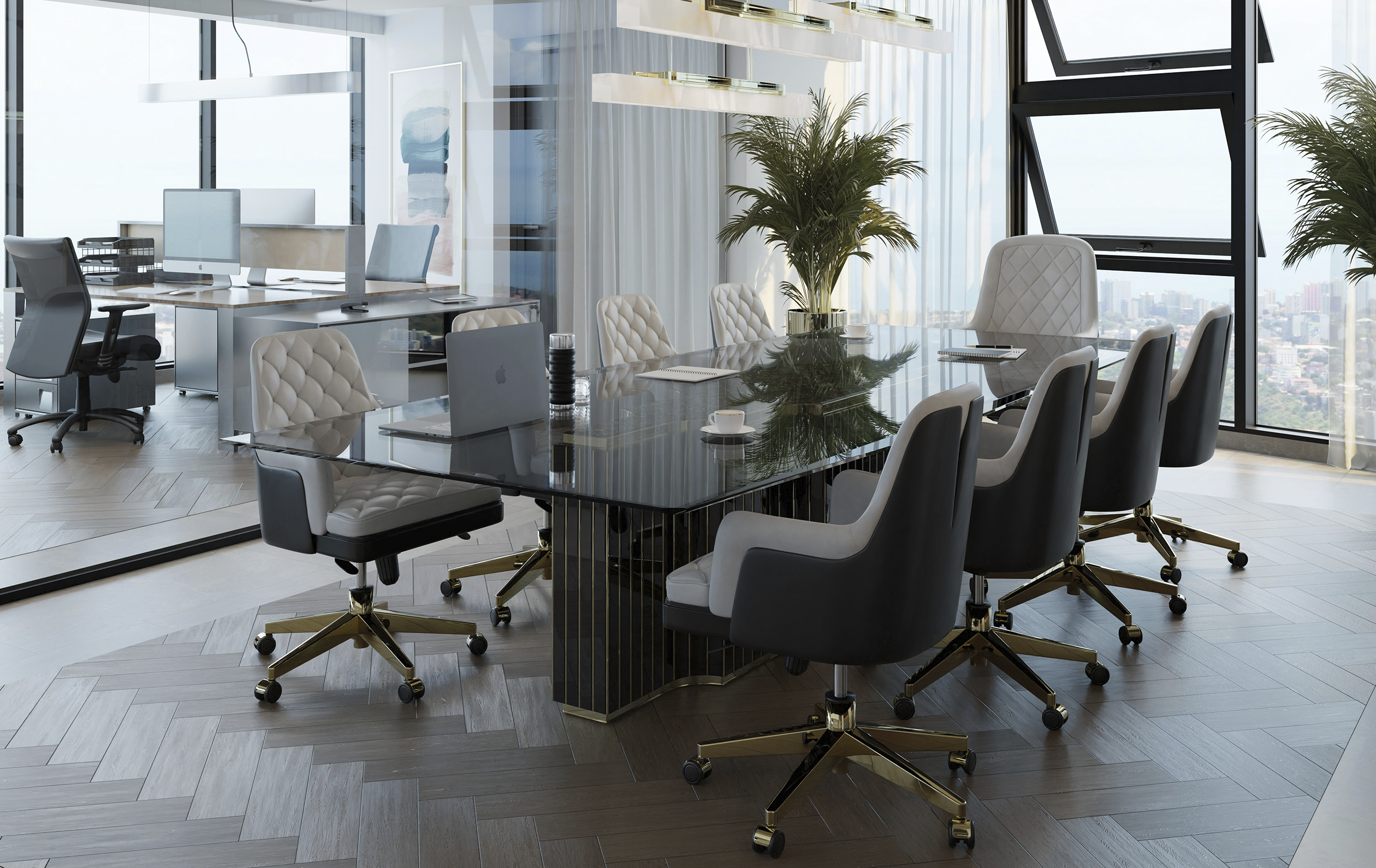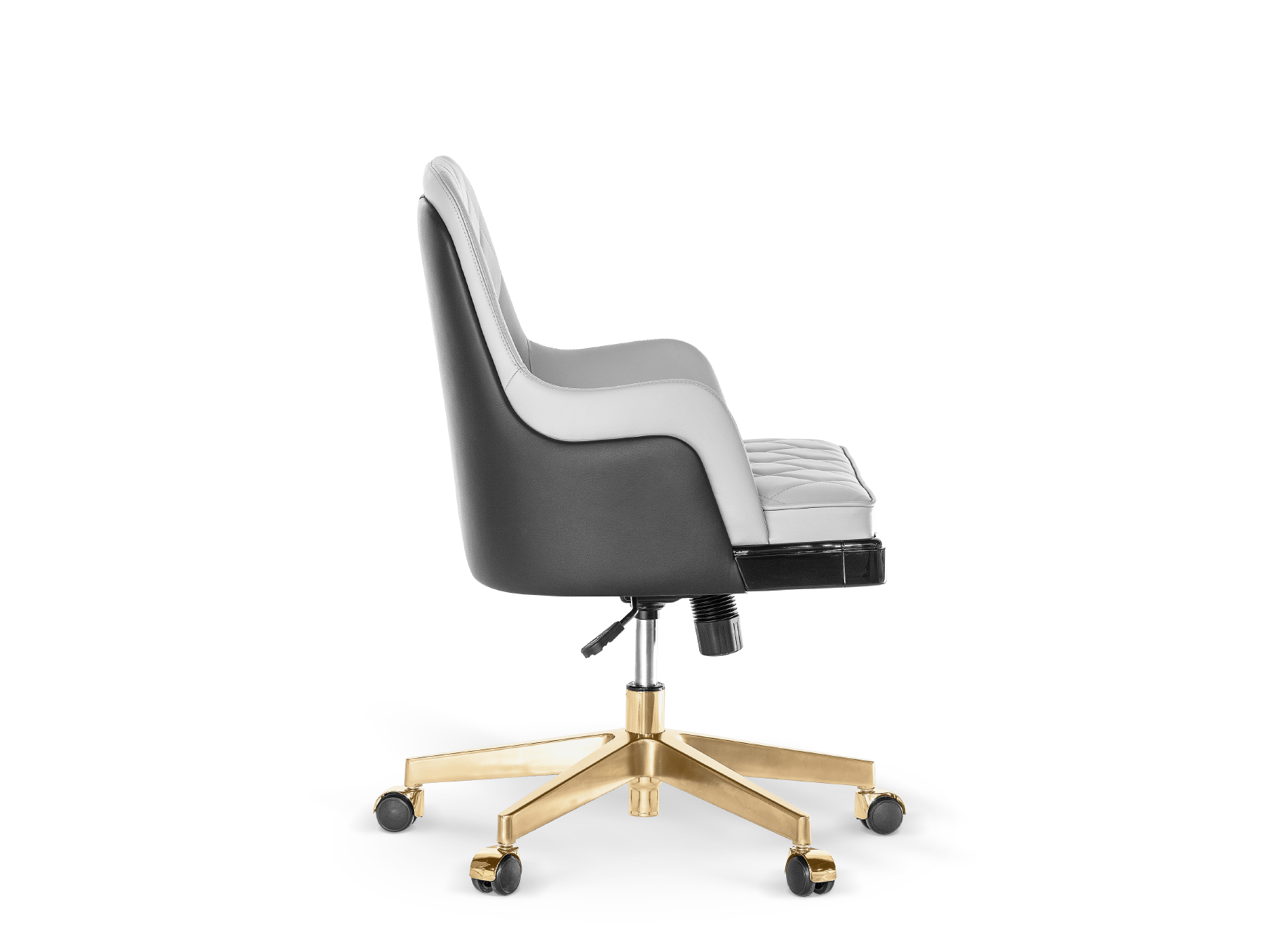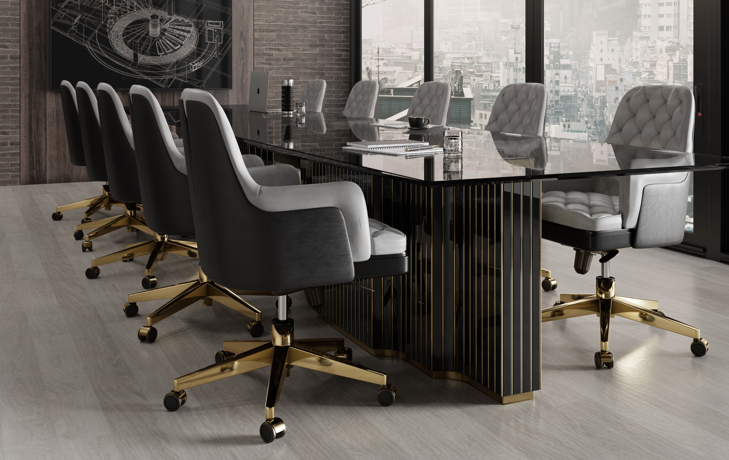 Body: Polished Brass, Black Lacquer, Black Leather & Gray Leather
