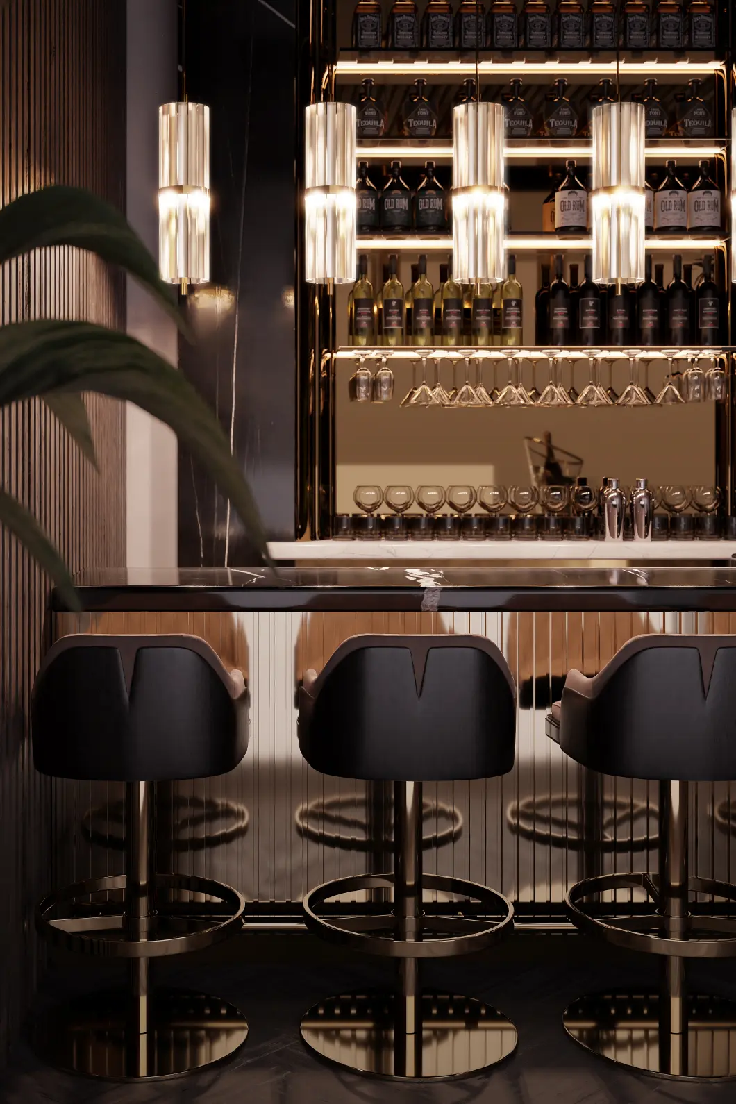 Body: Polished brass, Black leather & Brown velvet