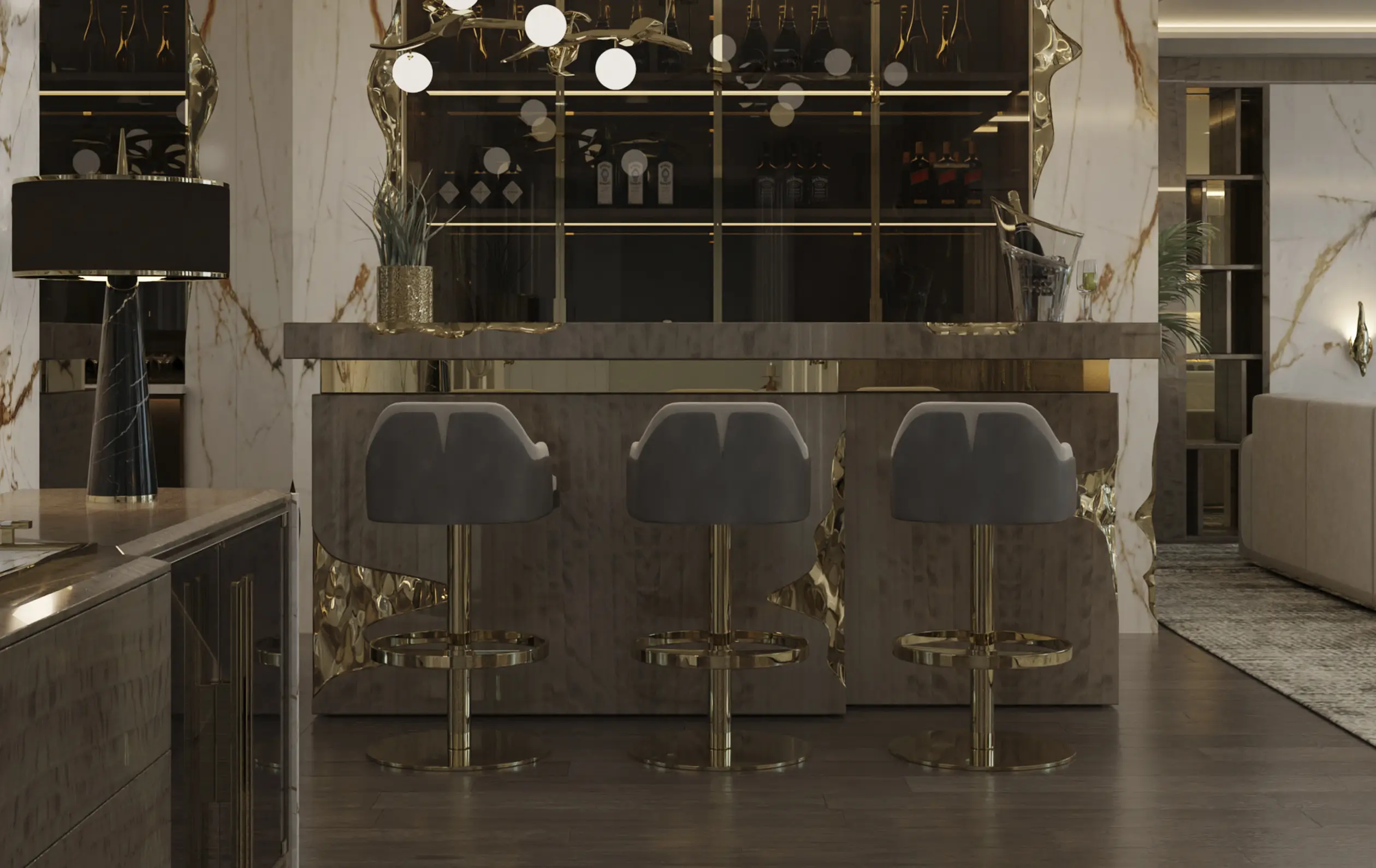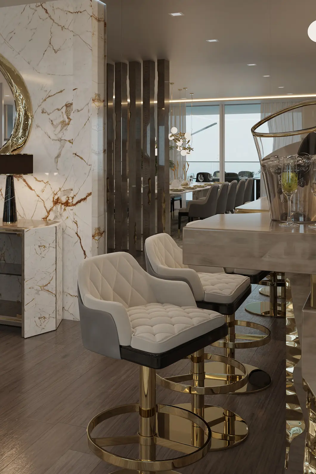 The Charla Swivel Bar Chair blends elegance and sophistication with a timeless design and unparalleled comfort. With a swivel feature, this upholstery solution adds a modern edge and a touch of vintage glam to any interior decor.
