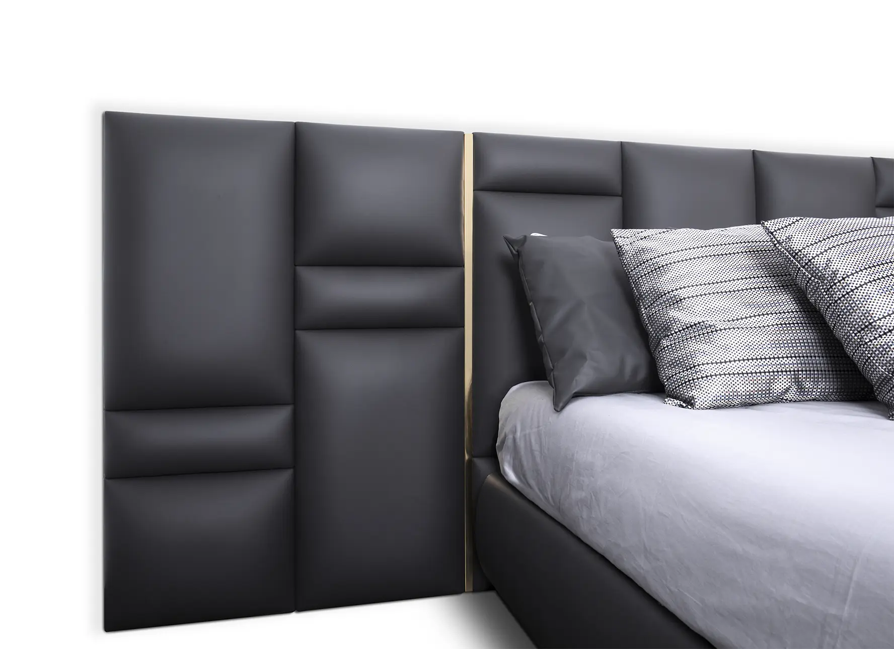 Inspired by the walls of French castles, the Château King Size Bed is a magnificent luxury piece that transforms any bedroom design into an exclusive chamber fit for royalty. Crafted with exquisite leather upholstery and elegant polished brass bars, this designer Kind bed features a modern headboard that makes a striking statement in any setting.