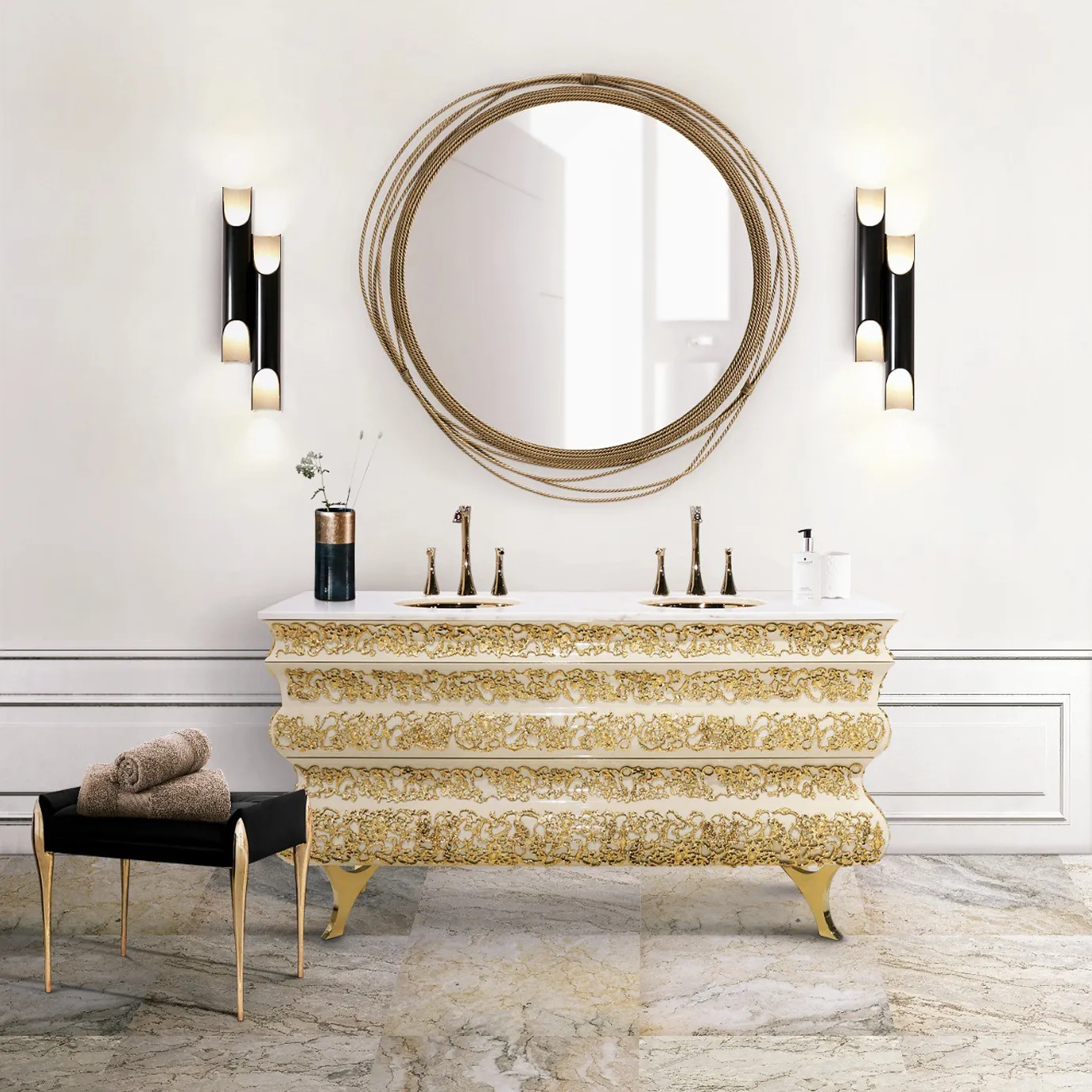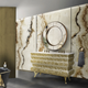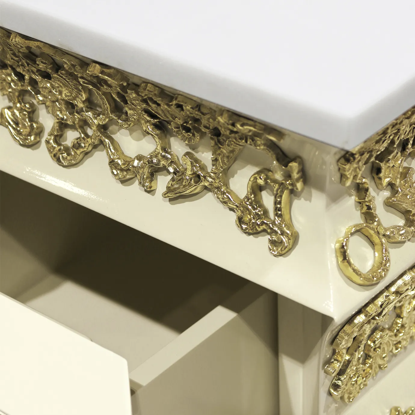 Structure: Glossy White-Cream Lacquered Wood and Knitting Polished Brass Details