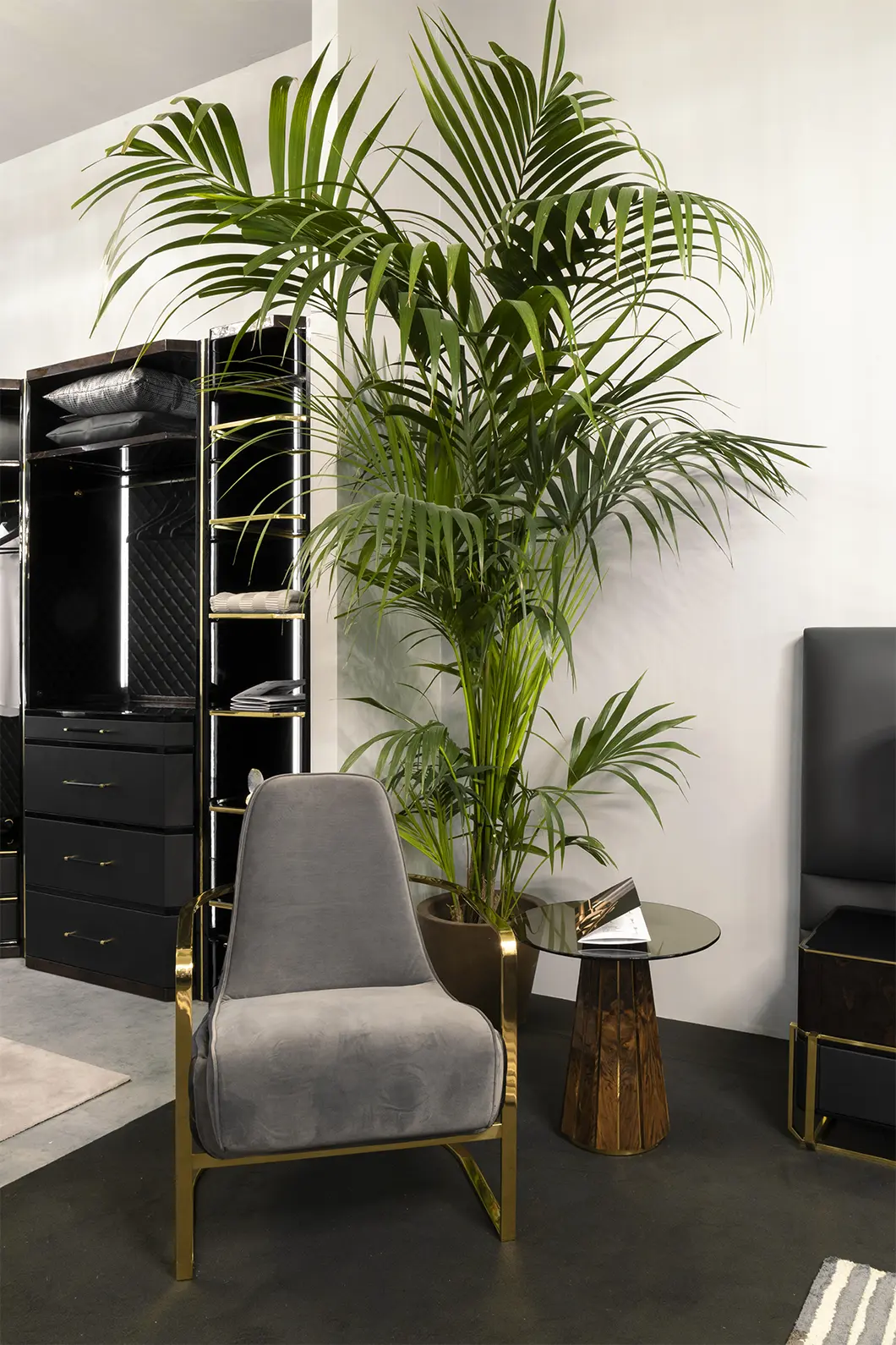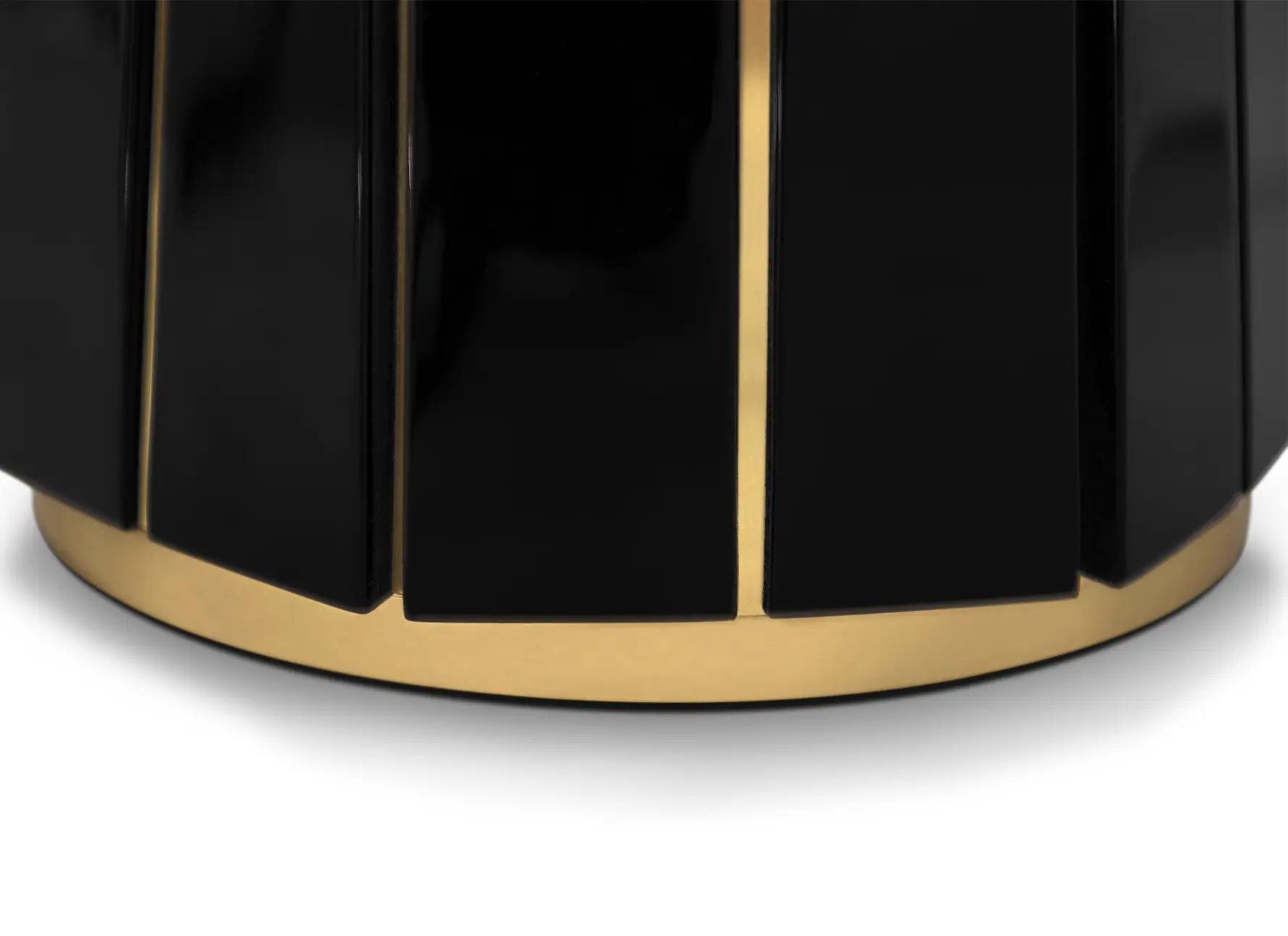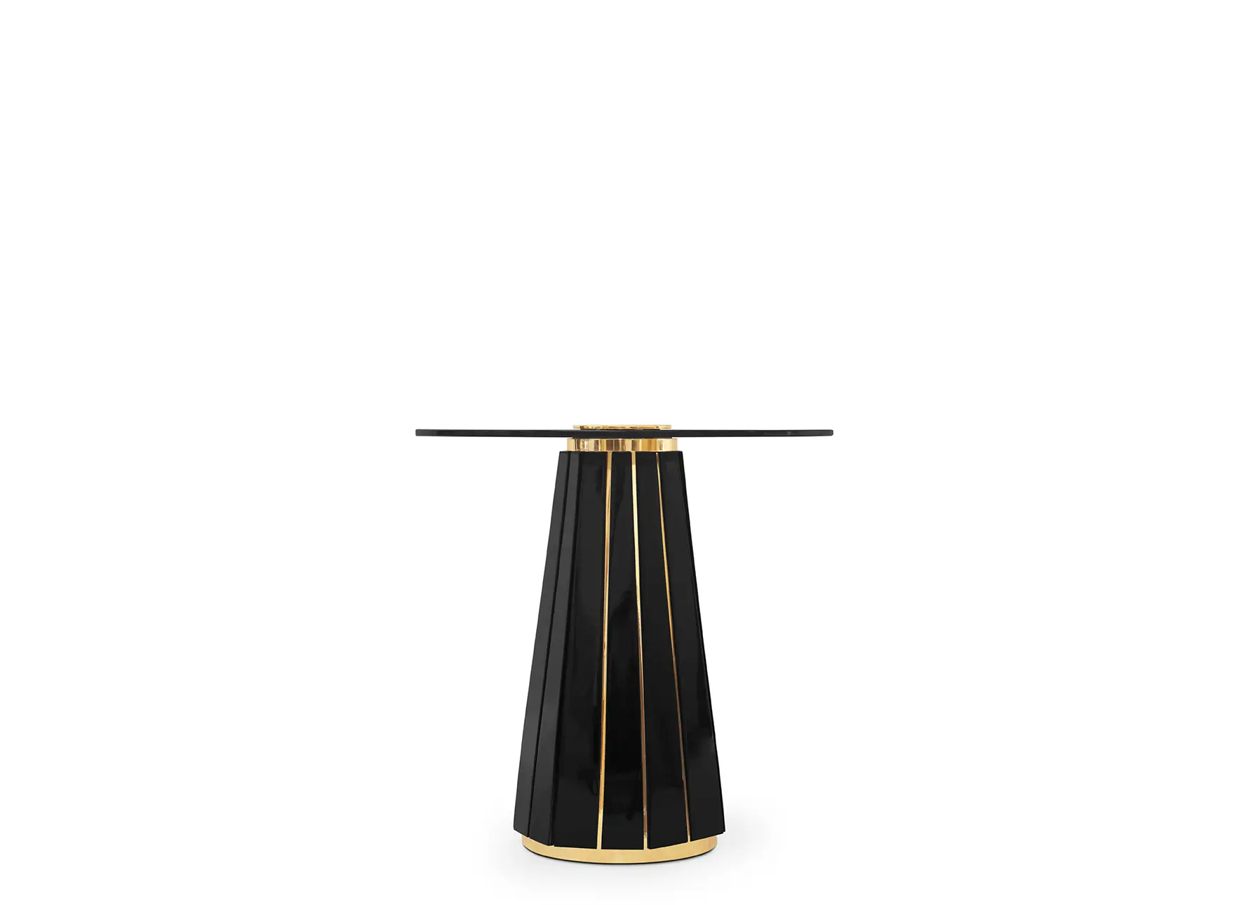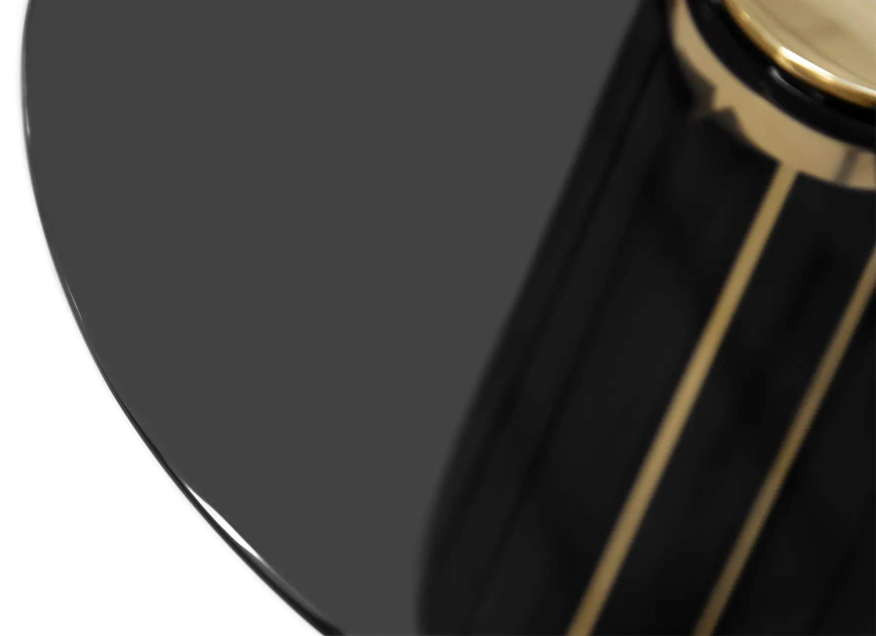 Inspired by the remarkable Darian sideboard, the Darian Side Table II exudes luxury and grandeur. With its impressive design, this modern side table features a handcrafted wooden structure in black lacquer, adorned with polished brass bars. The round smoked glass top adds a touch of sophistication to this ravishing piece. A piece that effortlessly adapts to any ambiance or style, making it a perfect choice for elevating any interior decor.
