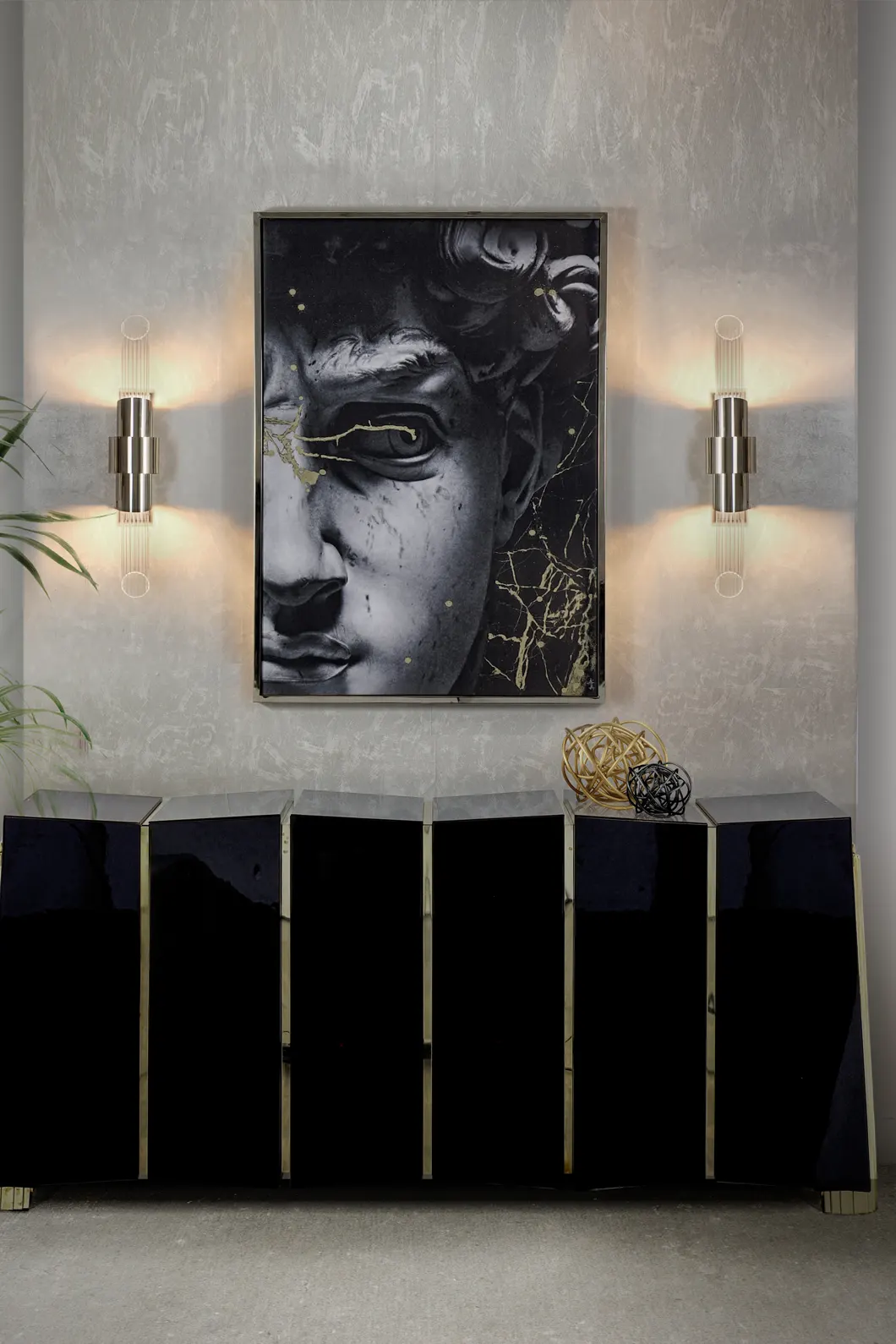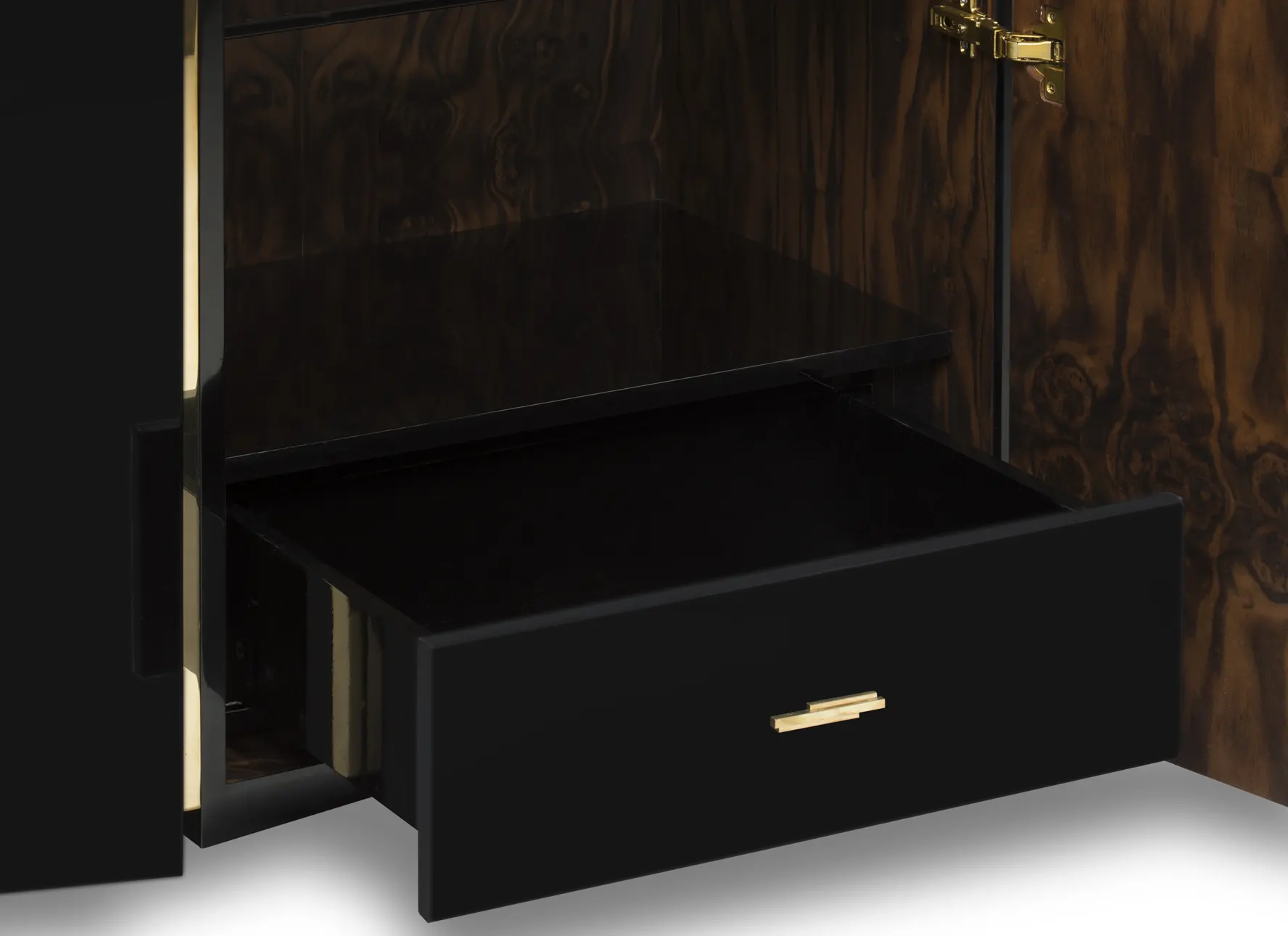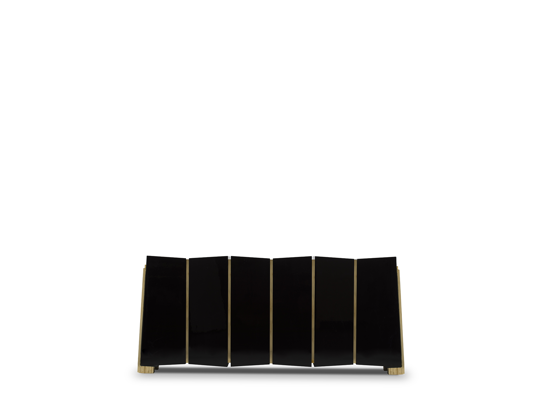 The Darian Sideboard draws inspiration from the power of the shield and sphere of protection, as well as the dynamic nature of its irregular shape. With precise knowledge of production techniques and materials, each with different specialties, from metalwork to wood carving, this piece showcases exceptional craftsmanship. It features a cluster of polished brass asymmetrical bars enveloping a wood structure in black lacquer, resulting in a captivating blend of artistry and strength.