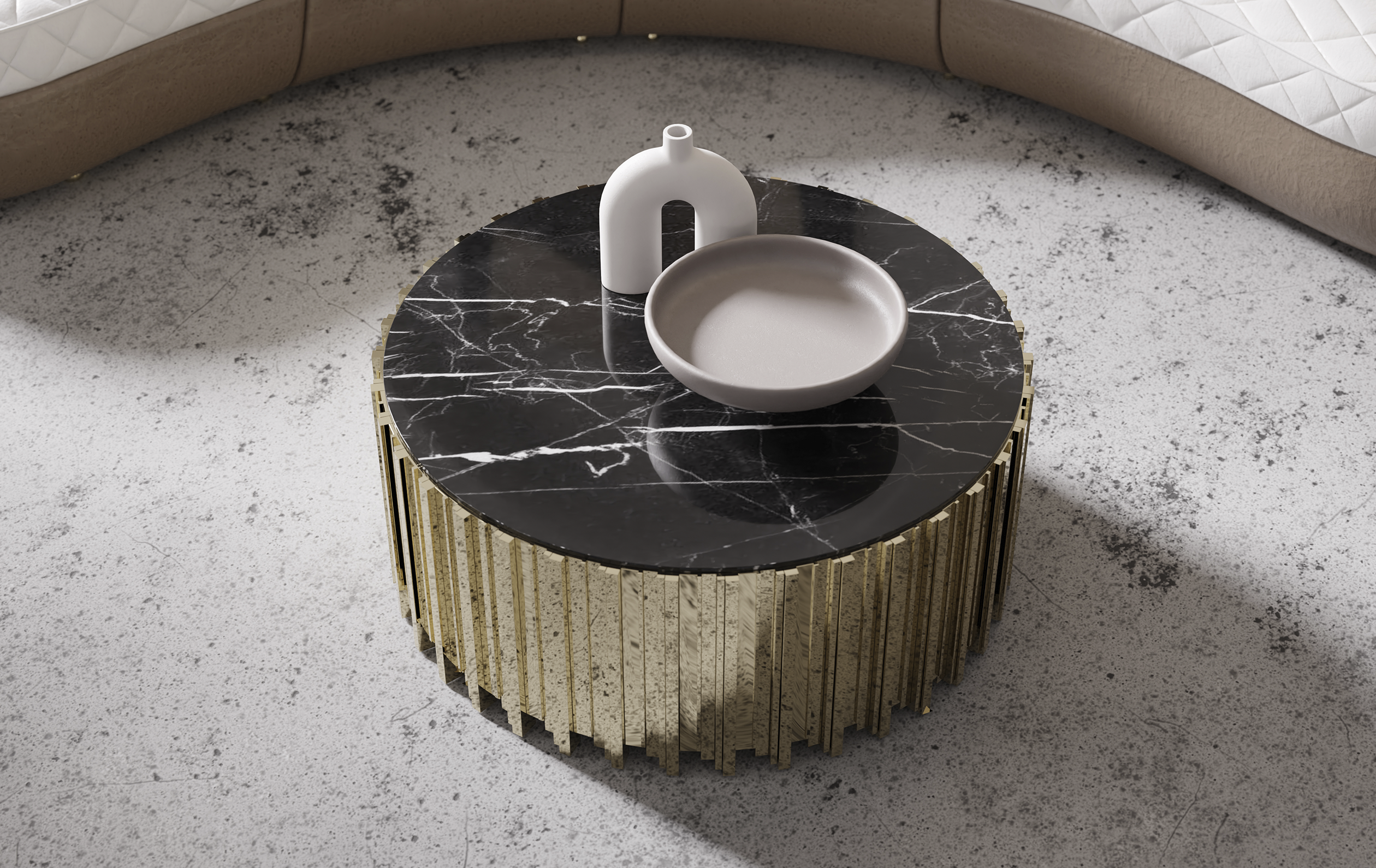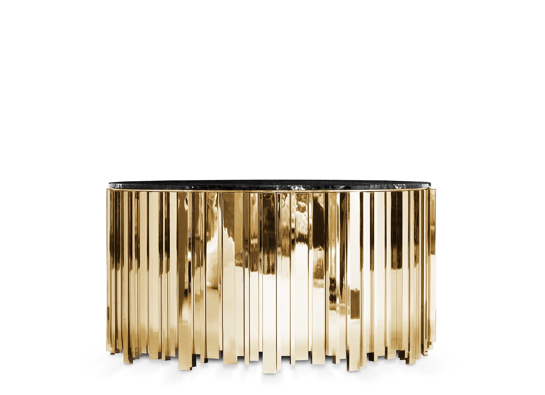 The Empire Center Table epitomizes elegance and style with its iconic lines. Carefully made with brass and Nero Marquina marble, this centerpiece seamlessly combines classic and modern design elements. Perfect for any interior setting, this round table is a true embodiment of timeless elegance, destined to enhance the allure of your space.