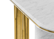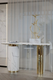 The Empire console table follows the iconic lines that the collection based on the Empire State Building is known for, but it introduces a new twist. Empire comes with a robust column and curved top made of Carrara marble, adding a regal and timeless feel. The veined nature of the marble also seamlessly matches with the metallic accents of brass, another main component of this exquisite console.