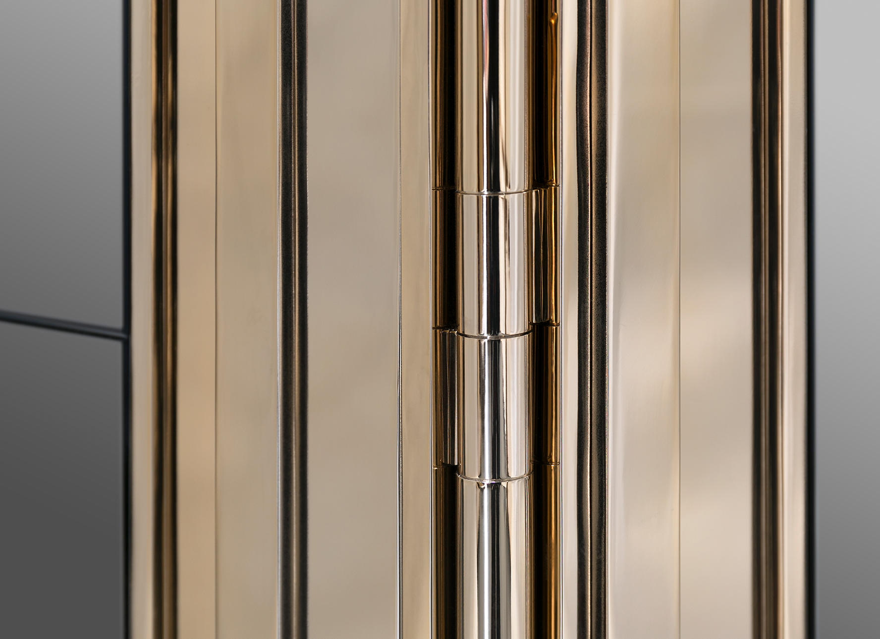The Empire Screen is an absolute must-have for projects that demand nothing short of perfection. This exceptional folding screen features three panels of smoked black mirror and gold-plated brass, making it an exquisite and practical partition to divide any space. Its unparalleled luxury and elegance make it the ideal addition to any dressing room, providing both privacy and sophistication.