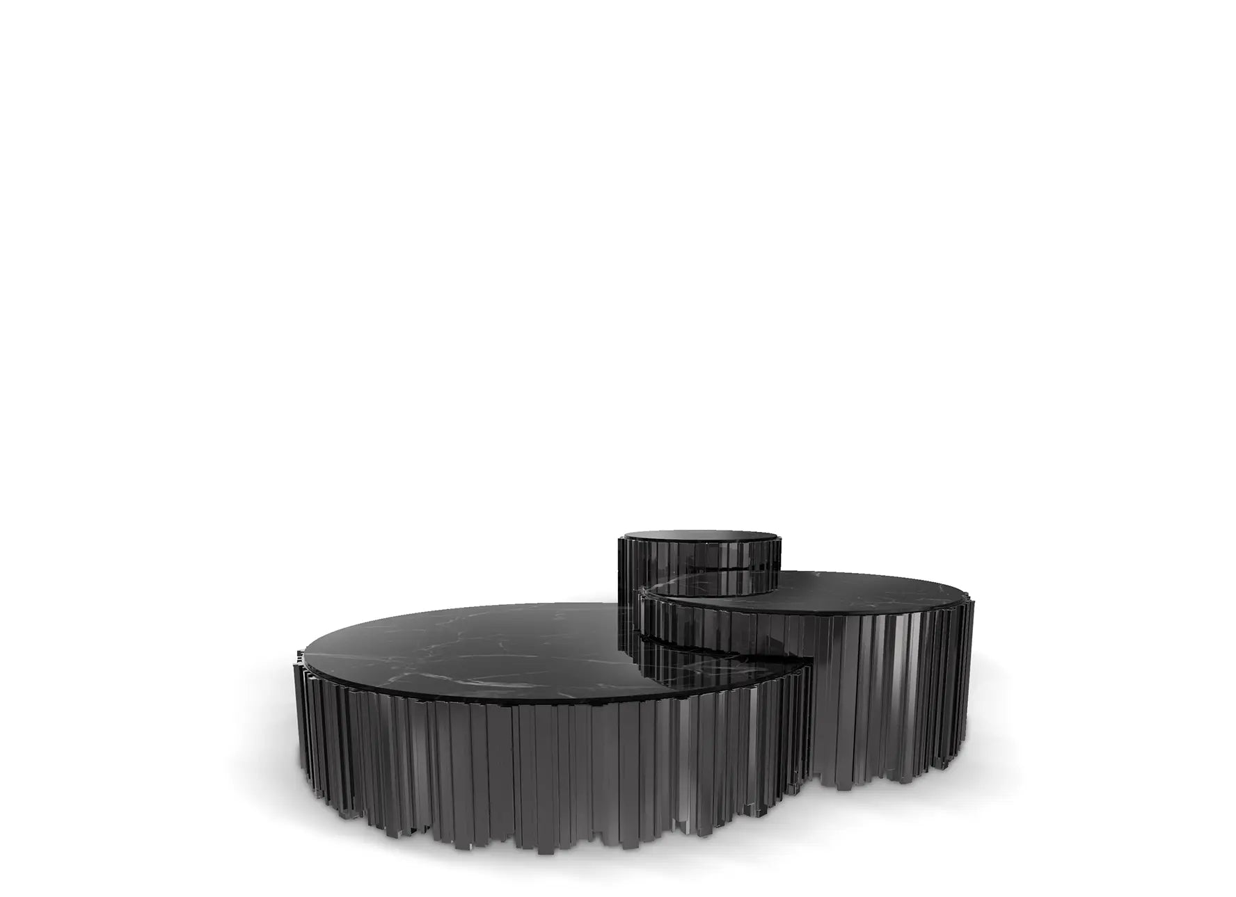 The iconic lines of the Empire Collection have inspired yet another creation, the Empire Set Center Table II. A modular three-piece round table made with gold-plated brass and Nero Marquina marble, this set is so glamorous and extravagant. The style that joins modern design with the antique line has the extraordinary power to centralize any atmosph