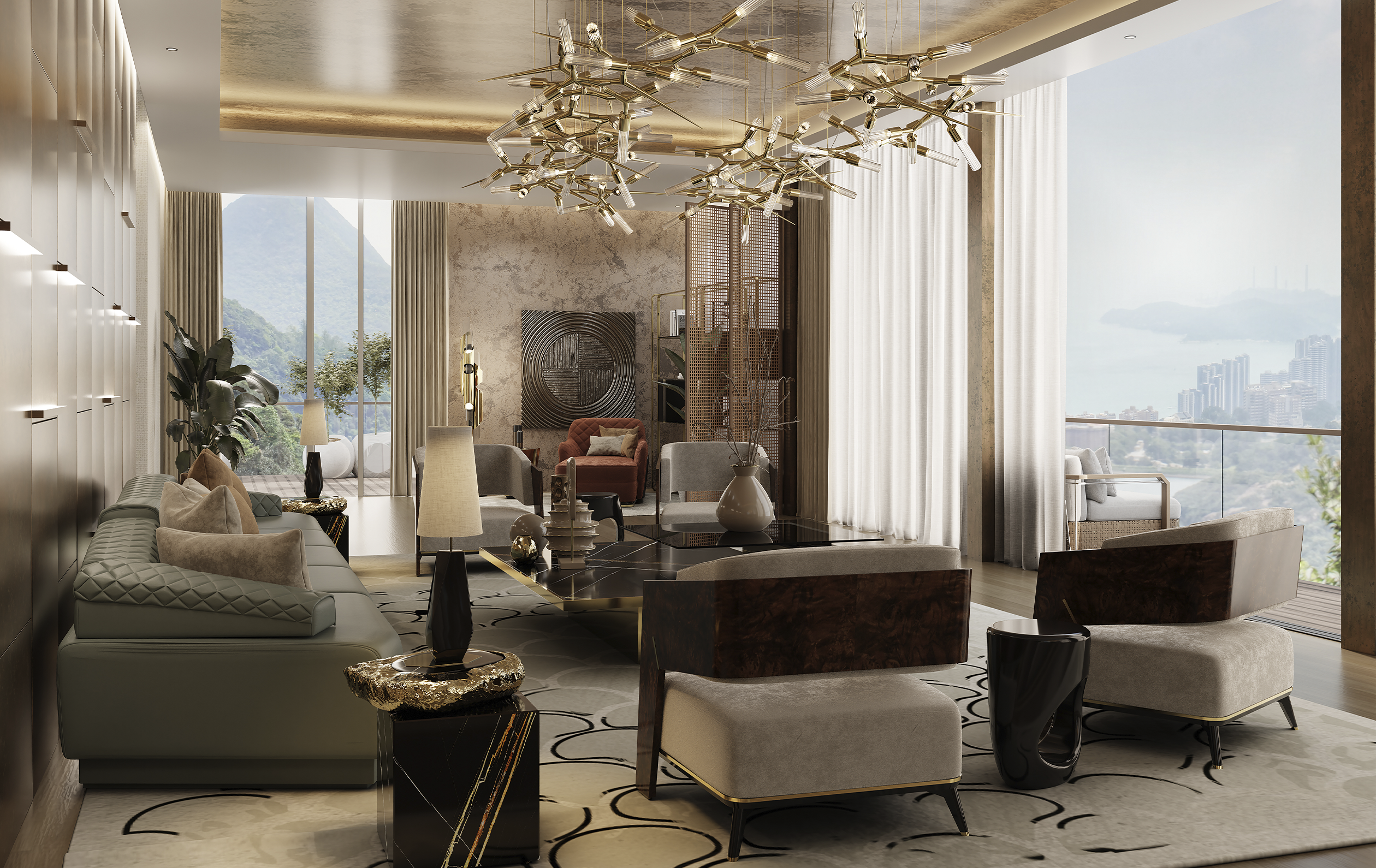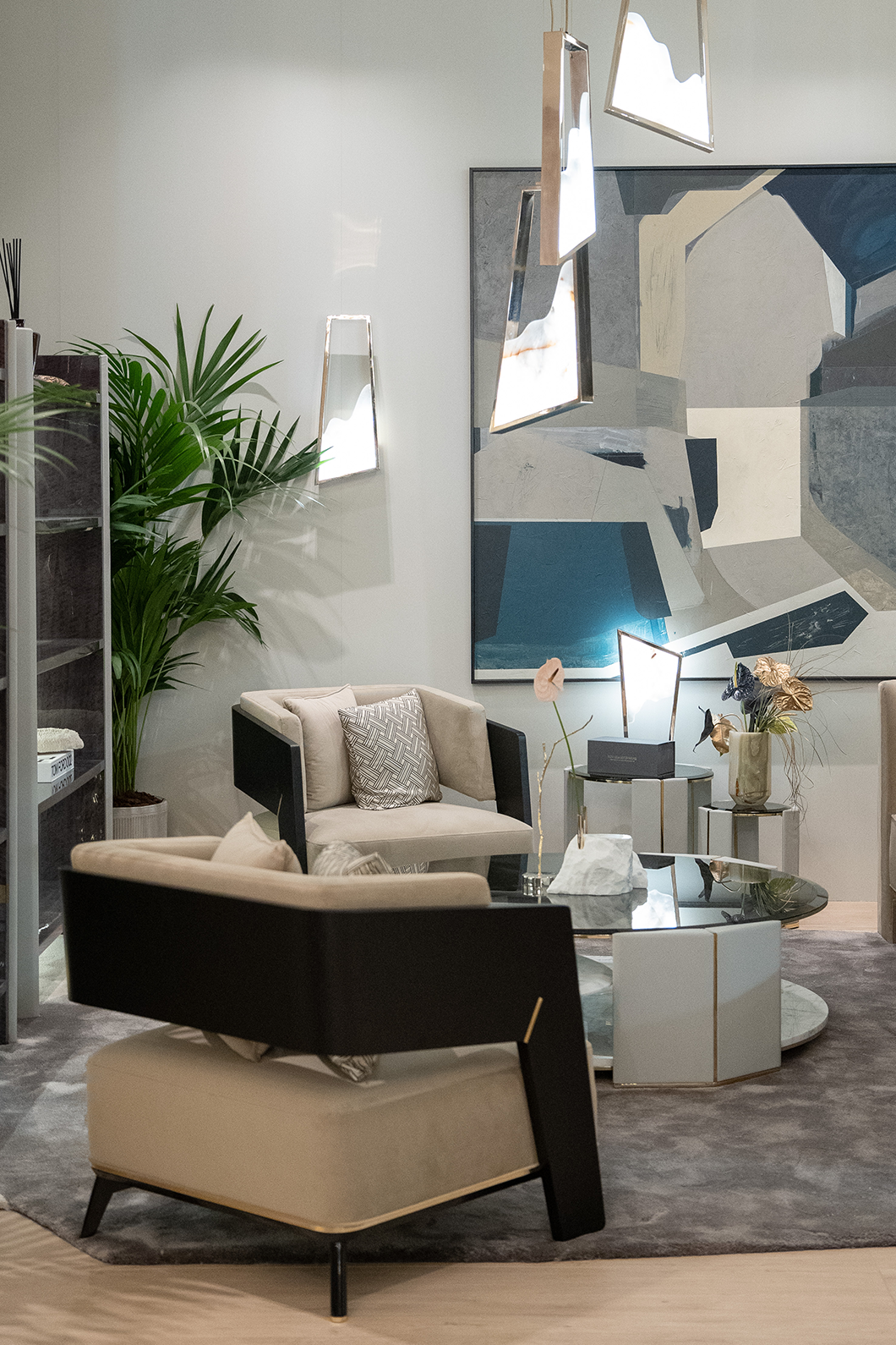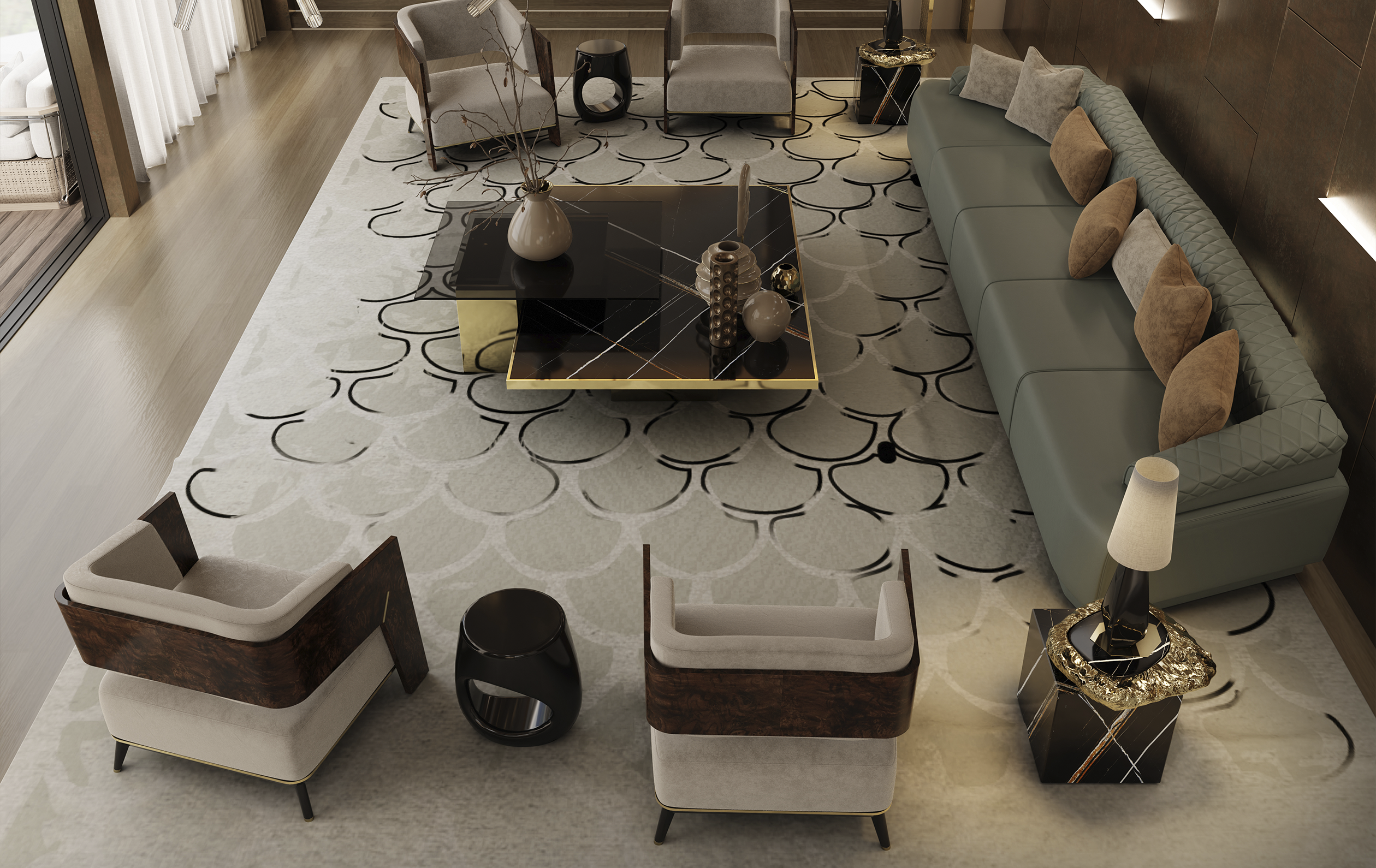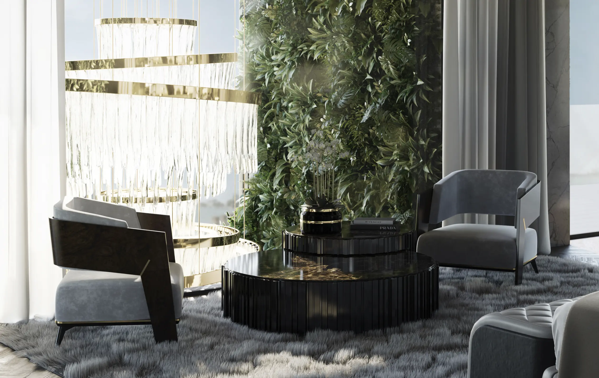 Body: Polished brass, Black oak leaf, black lacquer & grey velvet