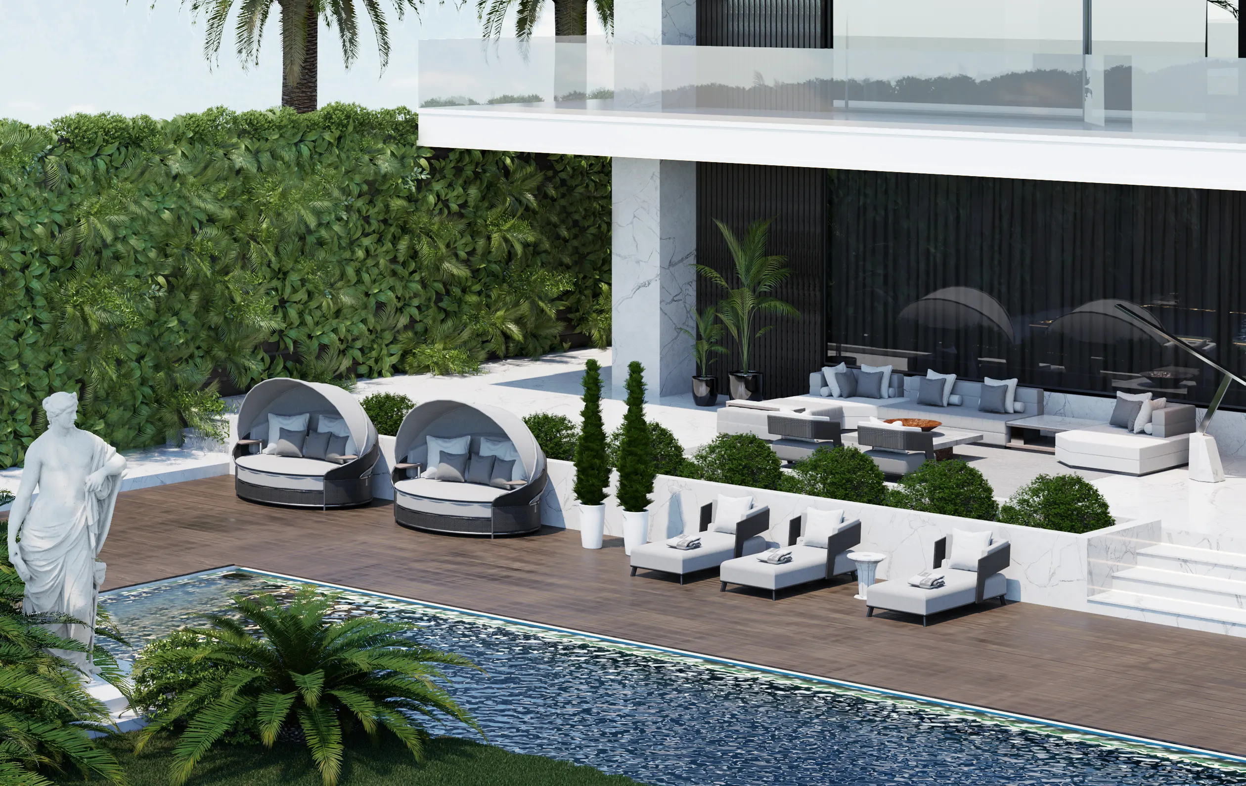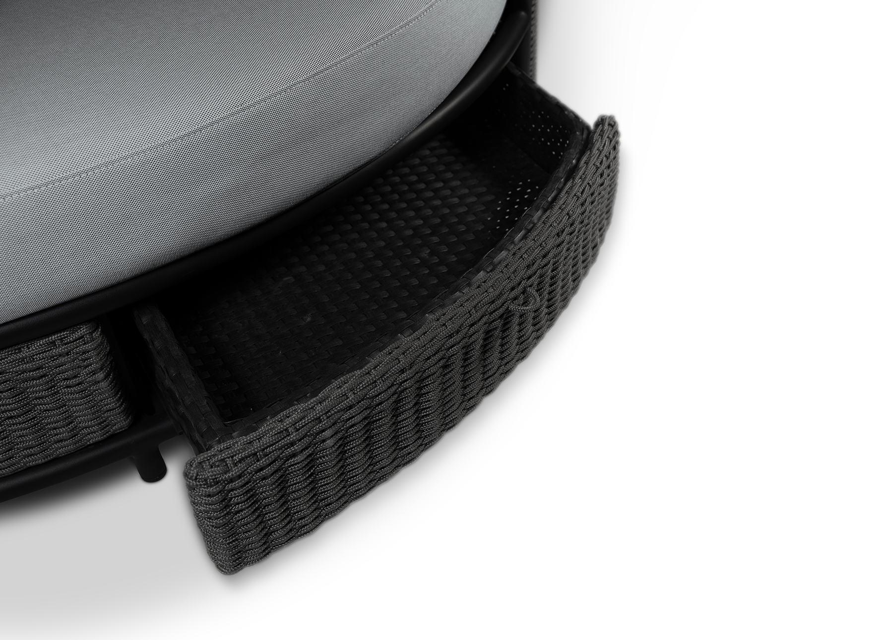 Finishes: Carbon Powder Coating, Polyrope Anthracite, Cement Fabric