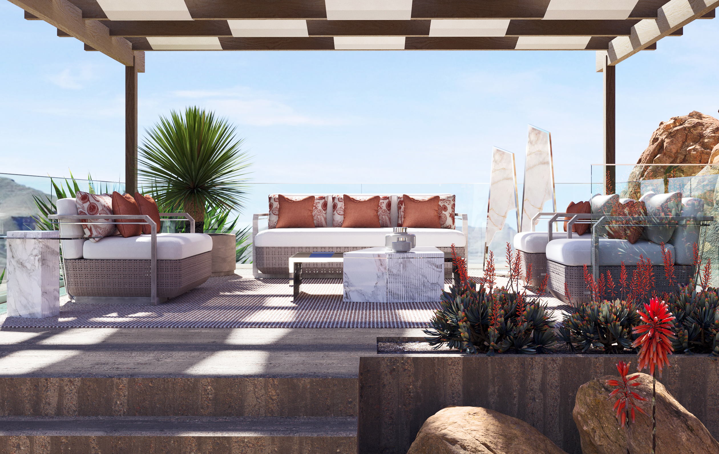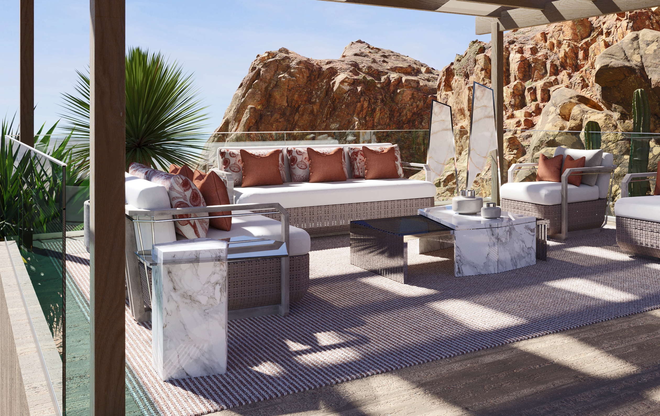 Finishes: Vintage Wood, Polished Stainless Steel, Weaving Seashell & Sand Fabric