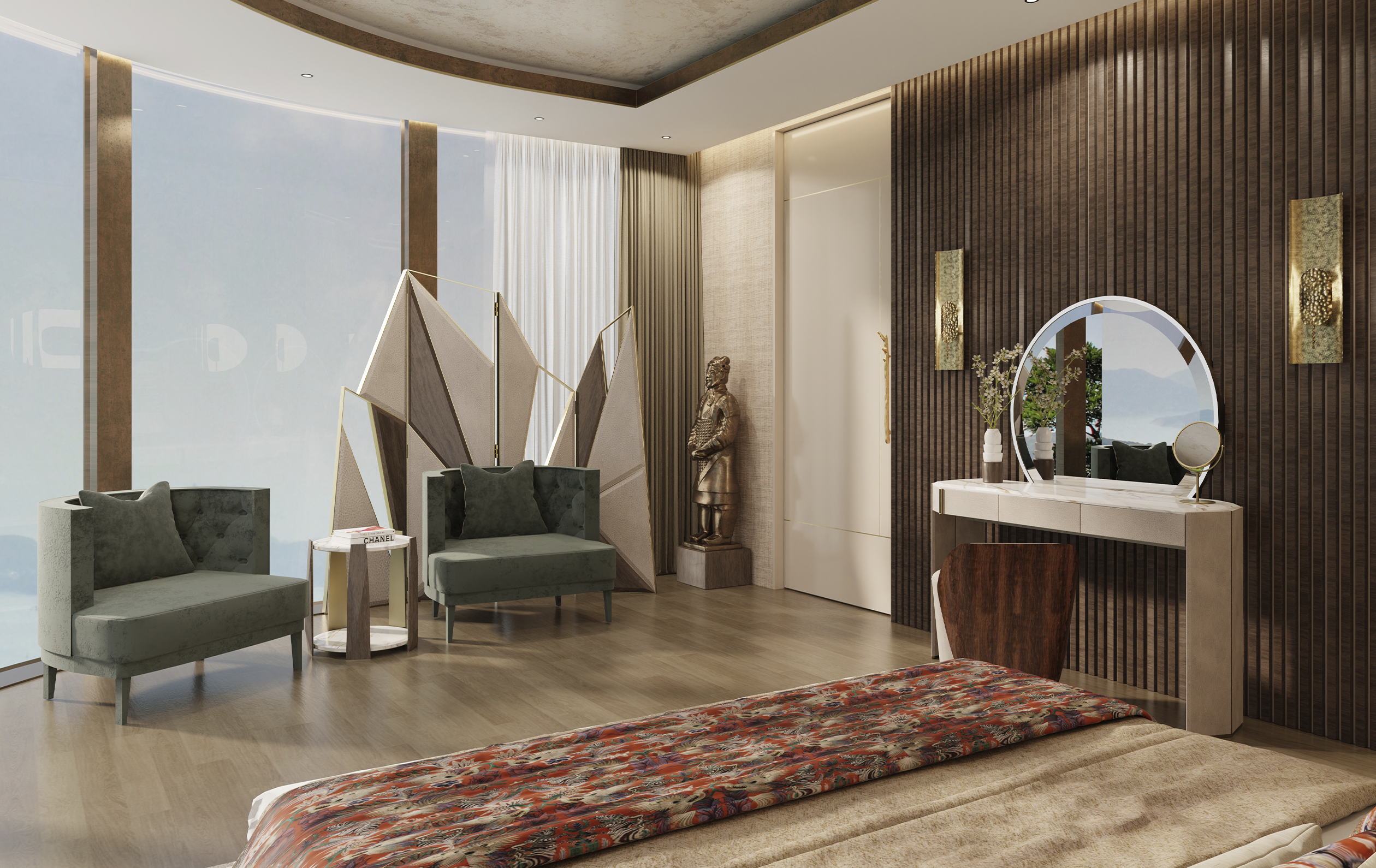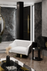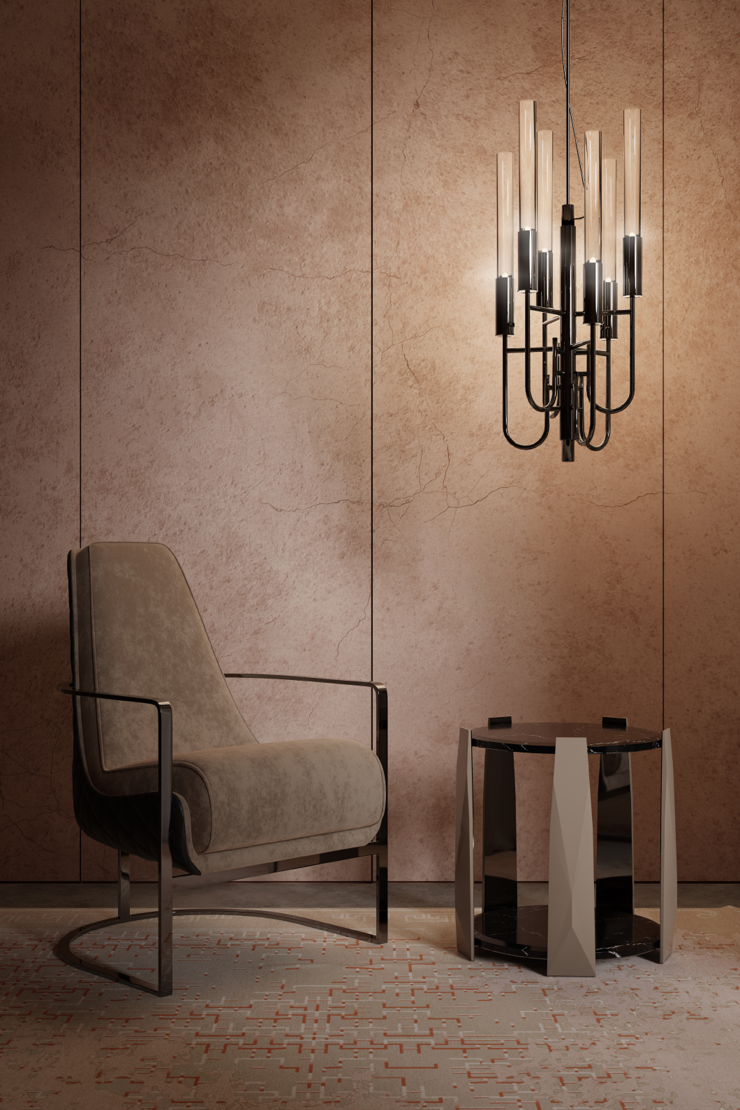 The Imperium Side Table is inspired by the grandeur of dramatic castles and majestic city walls, reminiscent of opulent crowns. Its lacquered wood structure is adorned with polished brass accents and features a Nero Marquina marble top. With its strong and commanding presence, this luxury side table exudes a sense of power, symbolizing strength and bringing a touch of greatness to any interior setting.