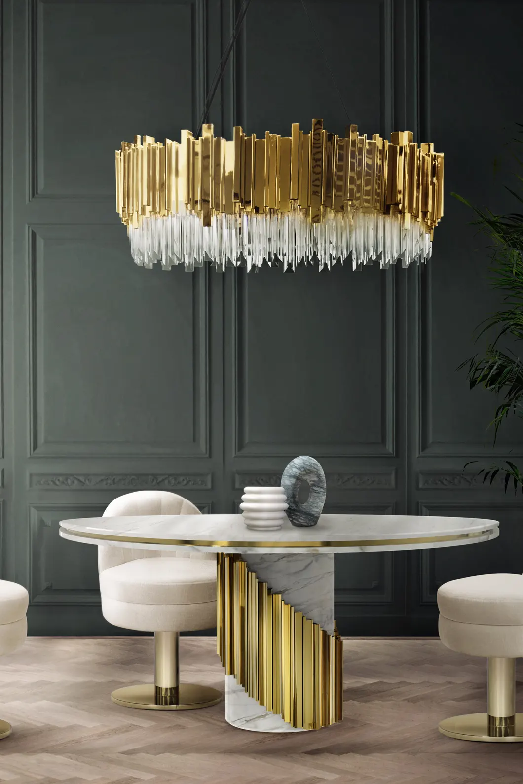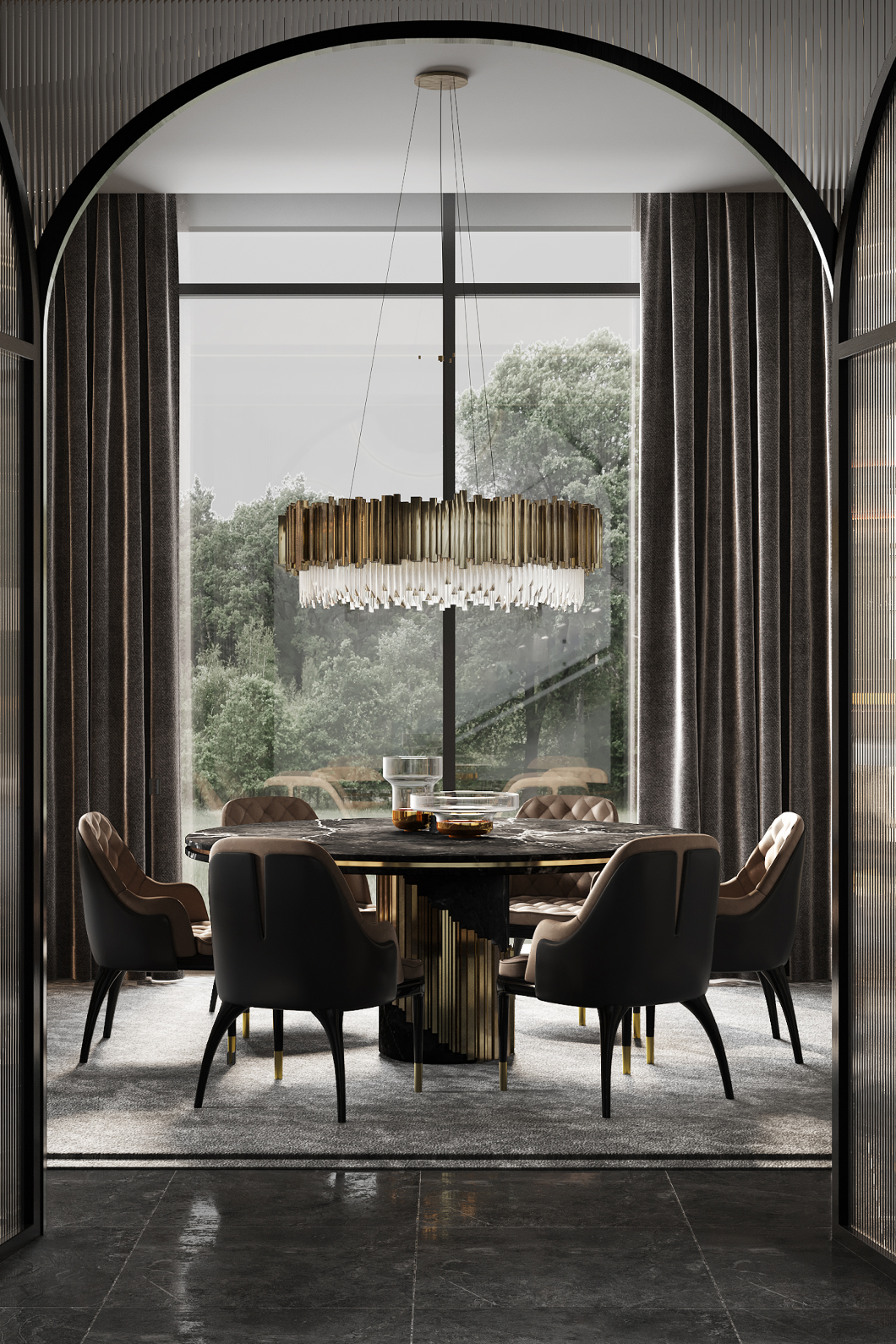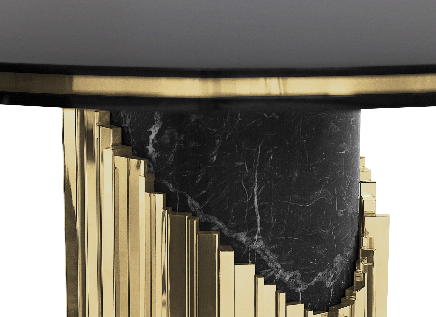 The Littus Dining Table embodies a unique concept, symbolizing the elegance of spirals. Crafted with precision and quality, this luxury table features Nero Marquina marble and polished brass, showcasing exceptional craftsmanship and design. It becomes the focal point where great decisions are made and determined minds gather.