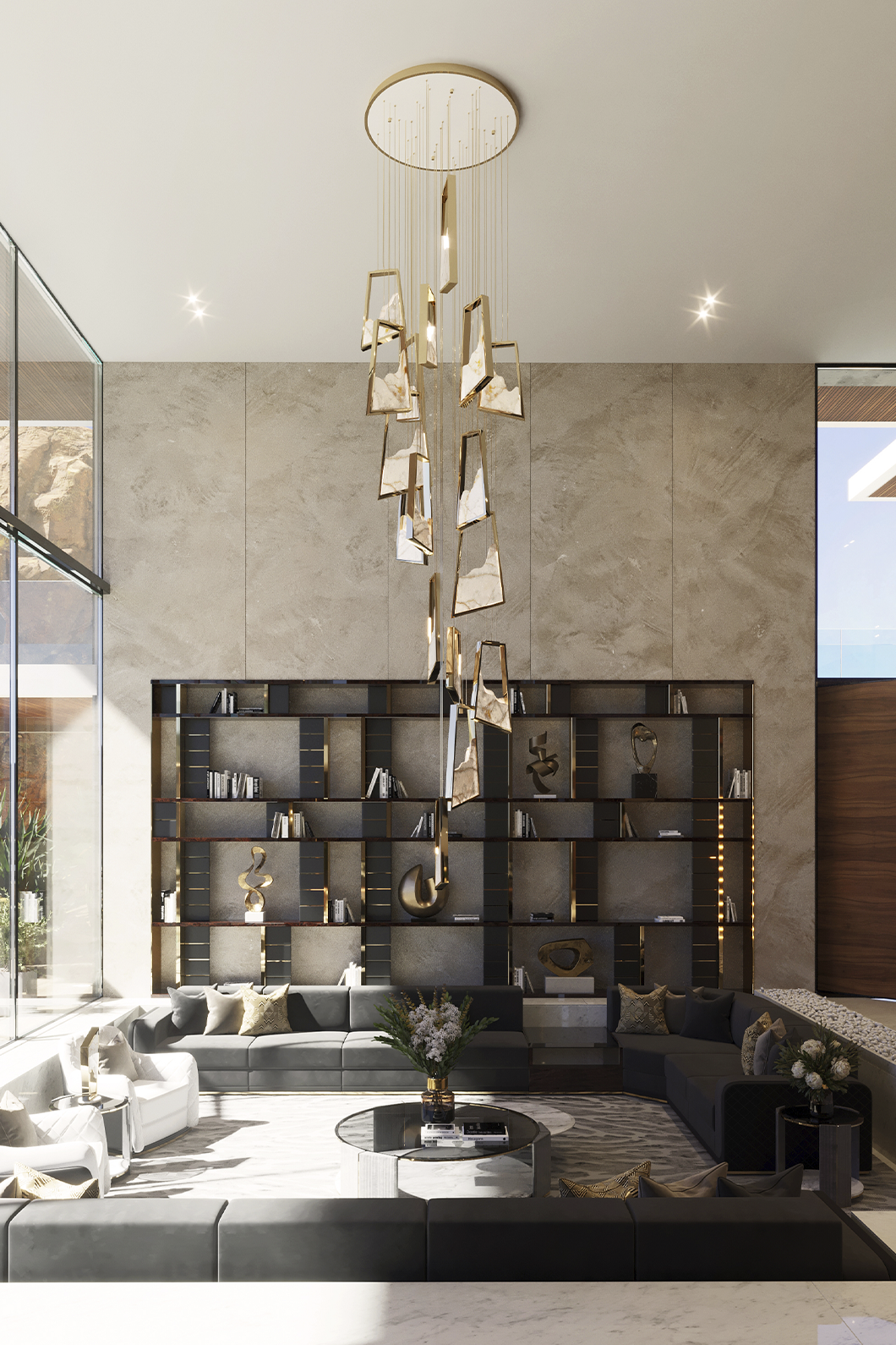 The Lloyd Bookcase is crafted with timeless and subtle lines to complement any interior. This functional yet decorative bookcase will subtly enhance your contemporary and modern office design. This designer bookcase is meticulously crafted using high-end materials such as polished brass, walnut root, and grey leather, ensuring durability and sophistication in every detail.