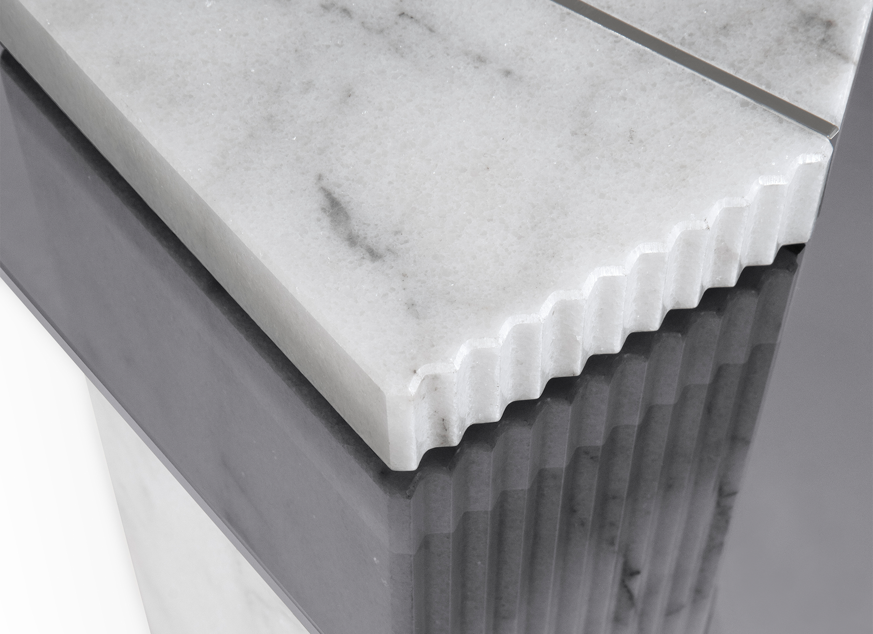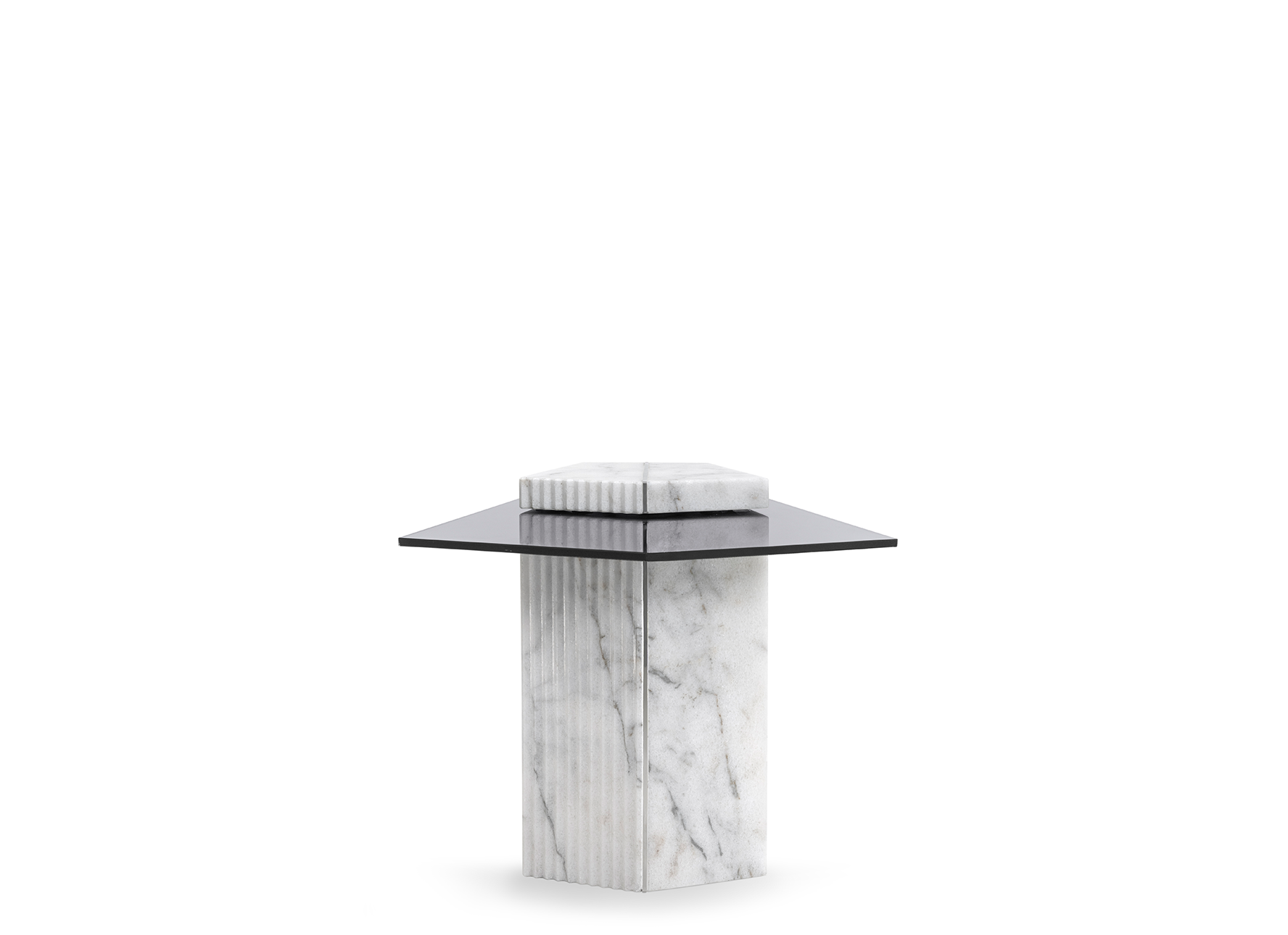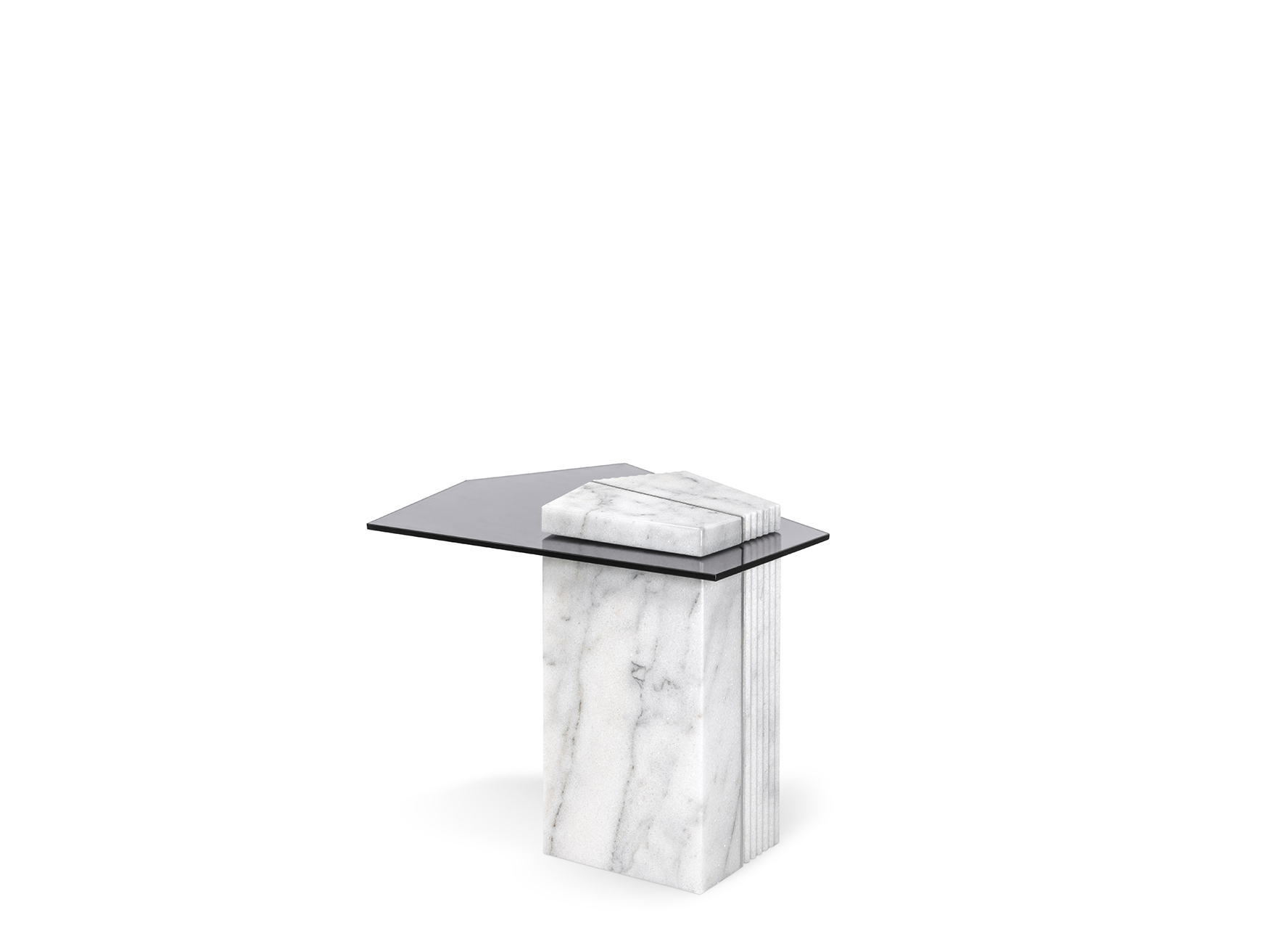The Mayer Side Table was designed as an expression of luxury, combining both marble and glass in an architectural fashion. The veined marble column adds a classic look, while the smoked glass takes on a pentagon shape for an extra layer of detail. This side table is complementary to LUXXU’s namesake center table, a series that spruces up any style of outdoor area.