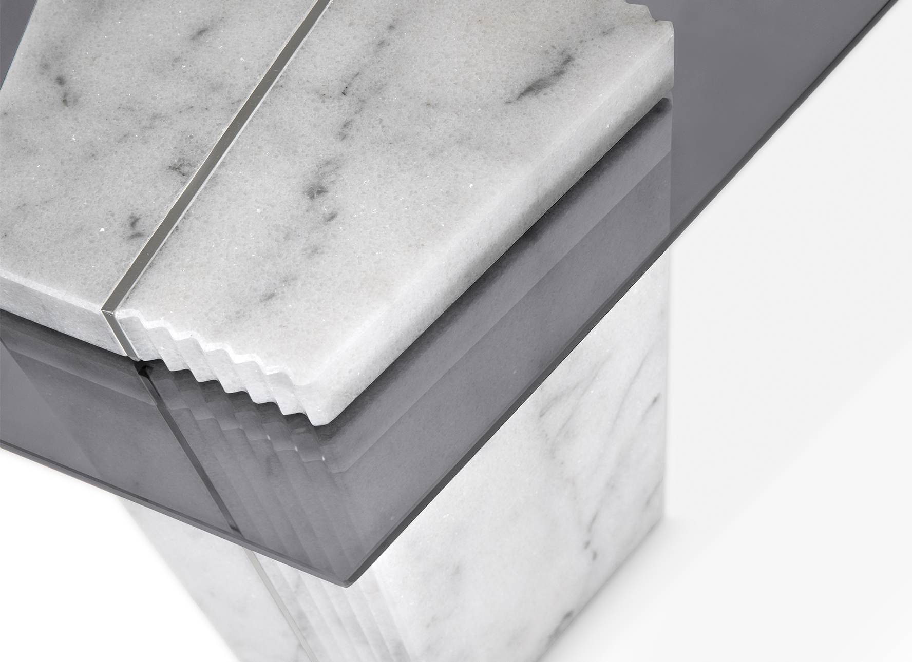 Polished Stainless Steel, Smoked Glass & Carrara Marble