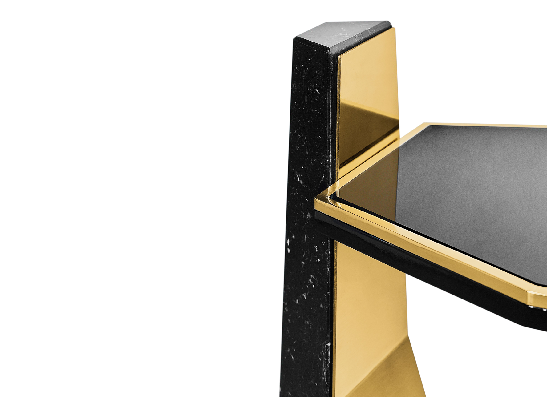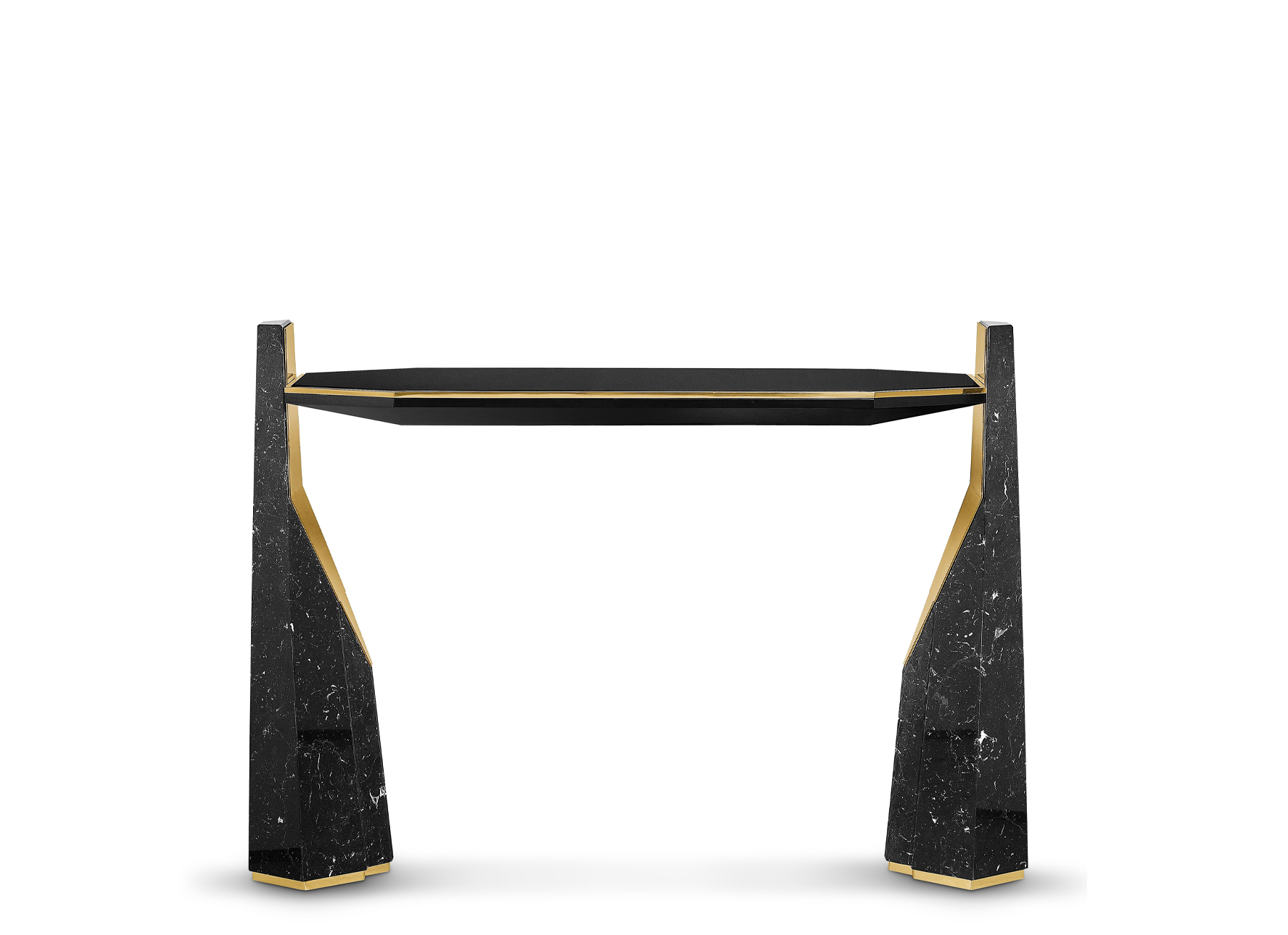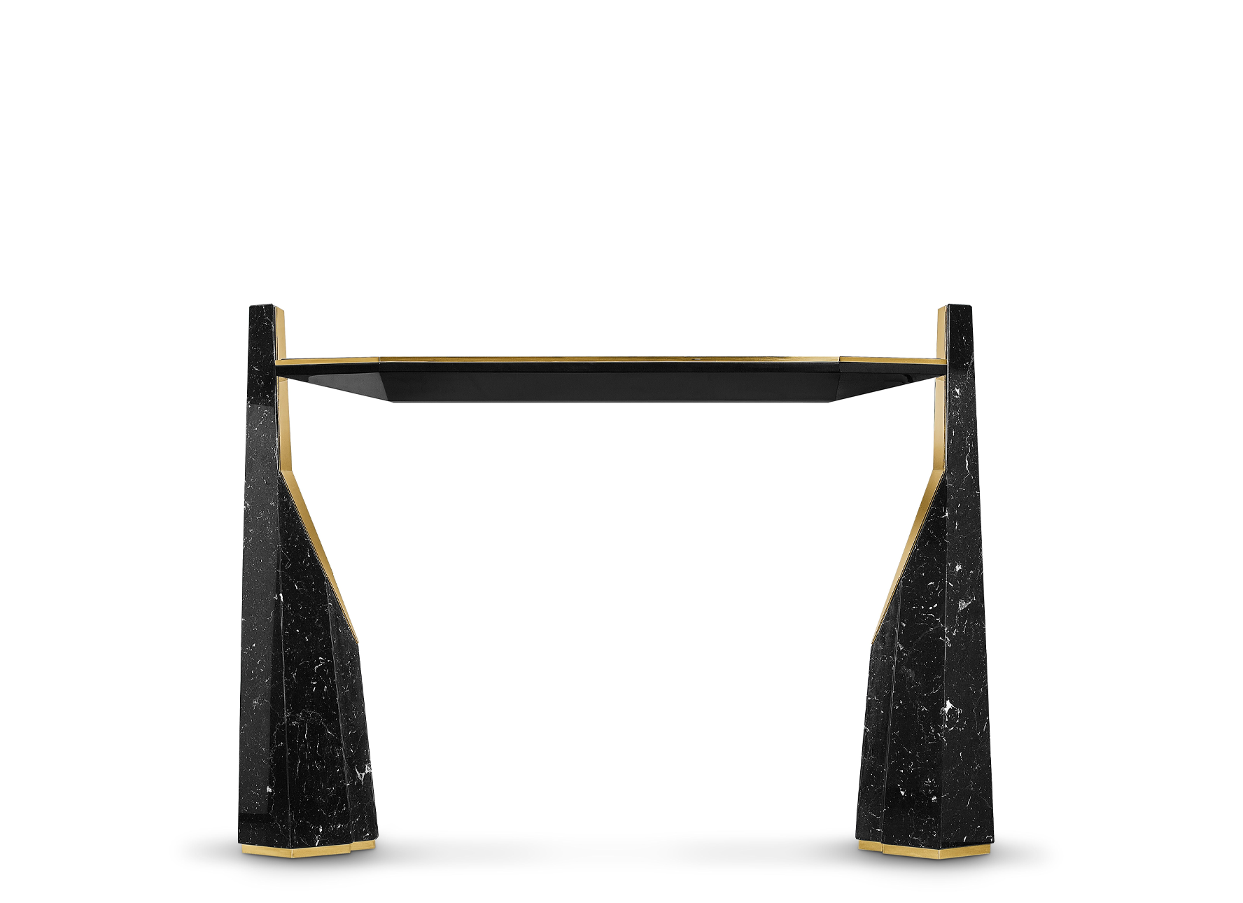 The Myllo console is an innovative design symbol that showcases artistry and functionality. Its versatile composition, which ranges from Nero Marquina marble to polished brass, creates a striking contrast. Designed with a bridge-like structure, Myllo draws inspiration from contemporary architecture, highlighting a bold figure and an avant-garde aesthetic. This statement piece embodies structural ingenuity and timeless elegance