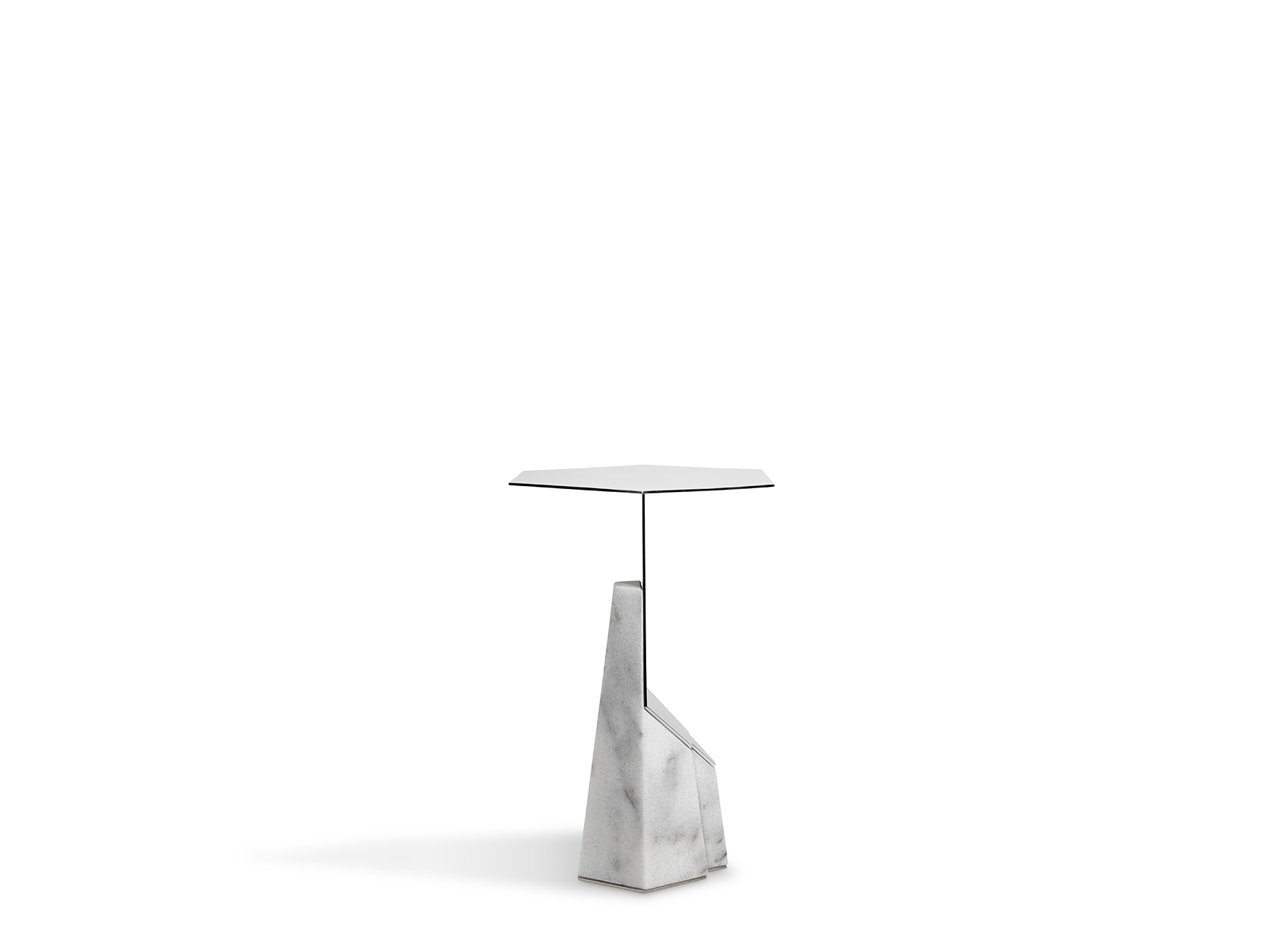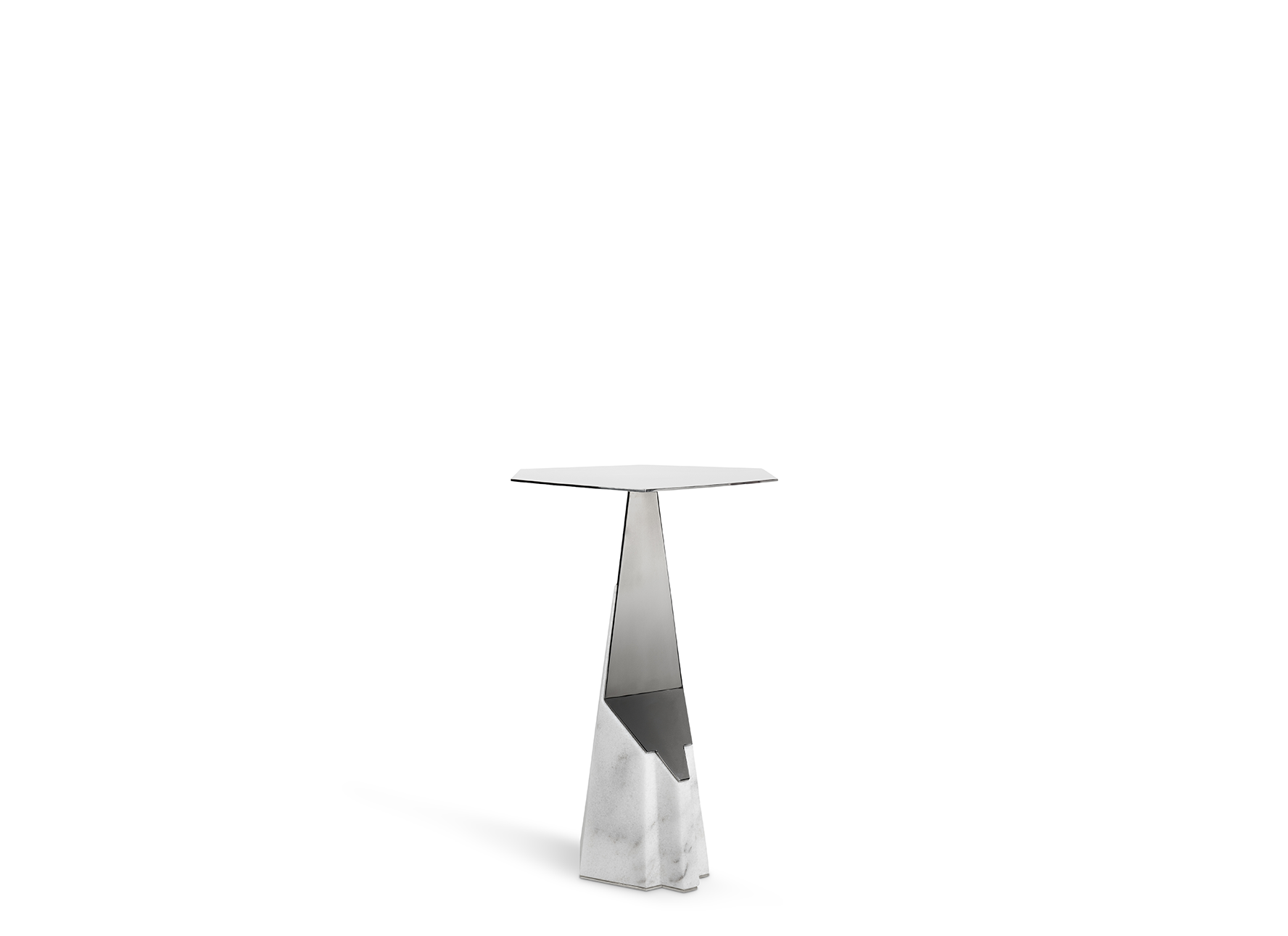 Myllo’s architectural allure is undeniable, as its design was inspired by the ambiguity of astounding structures worldwide. The Myllo Grey Side Table is made with a series of timeless materials displayed in a towering manner, including a Carrara marble base, stainless steel support, and a smoked glass top.