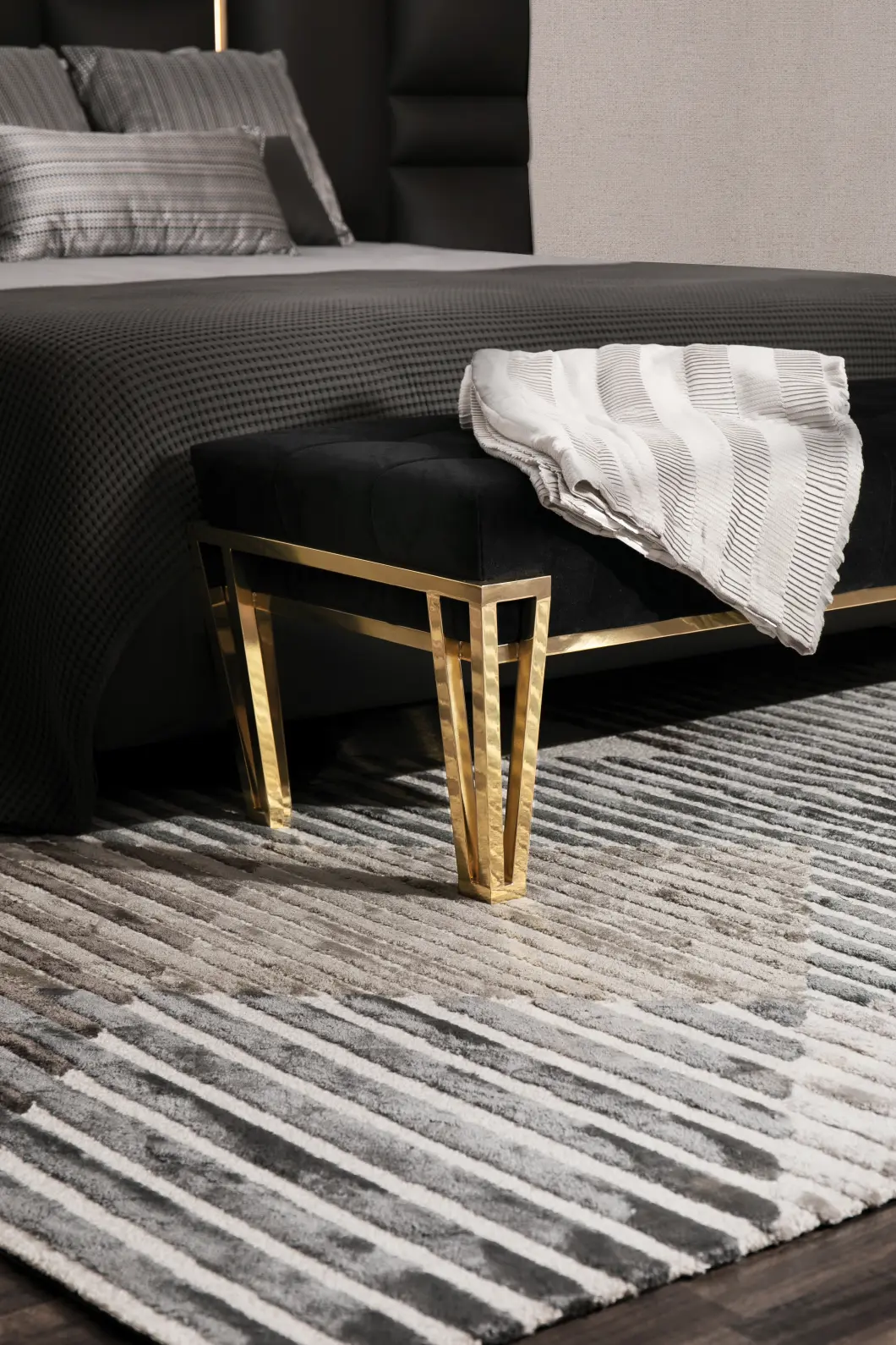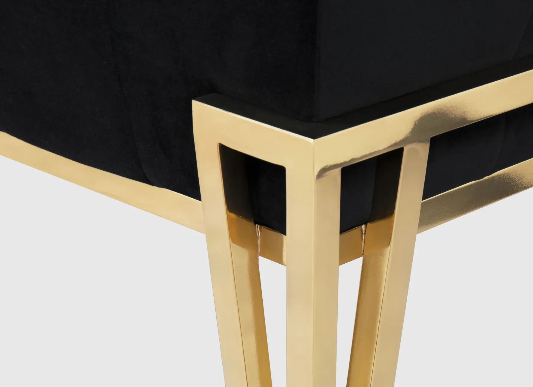 Made with the finest materials, the Nubian ottoman showcases luxurious leather upholstery and elegant polished brass legs. Its contrasting geometrical shapes make it a perfect addition to lavish interiors, adding style and versatility. Whether placed in bedrooms, living rooms, or opulent hotels, this ottoman is sure to make a statement of sophistication.