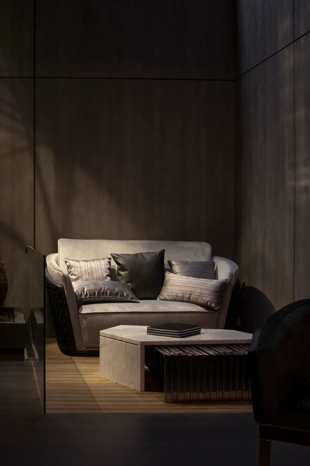 Inspired by lavish opera house seats, the Opera Sofa adds a sophisticated touch to any stylish living room or lounge. It features velvet upholstery, a leather back panel, and is available in a range of colors to suit modern interiors.