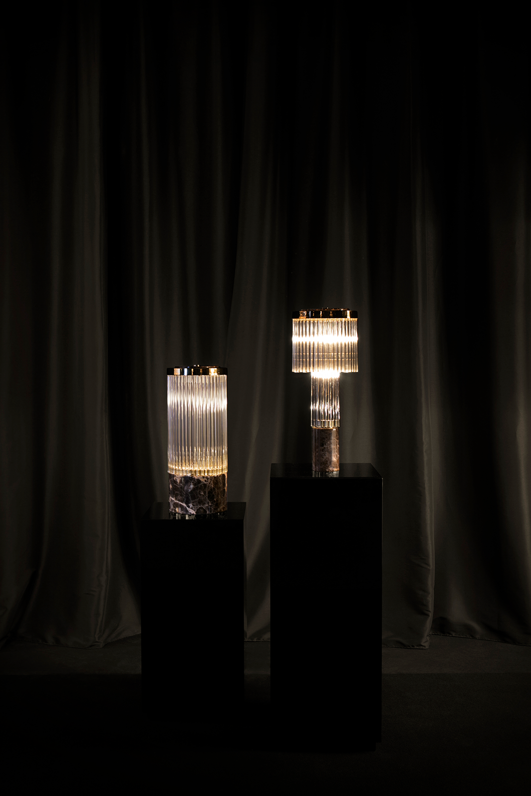 Body: Gold plated, Polished Emperador Marble & Crystal
