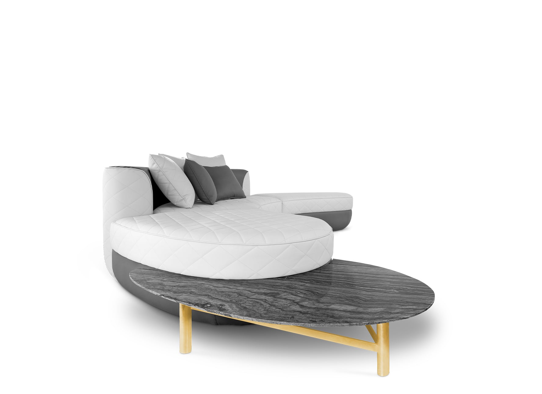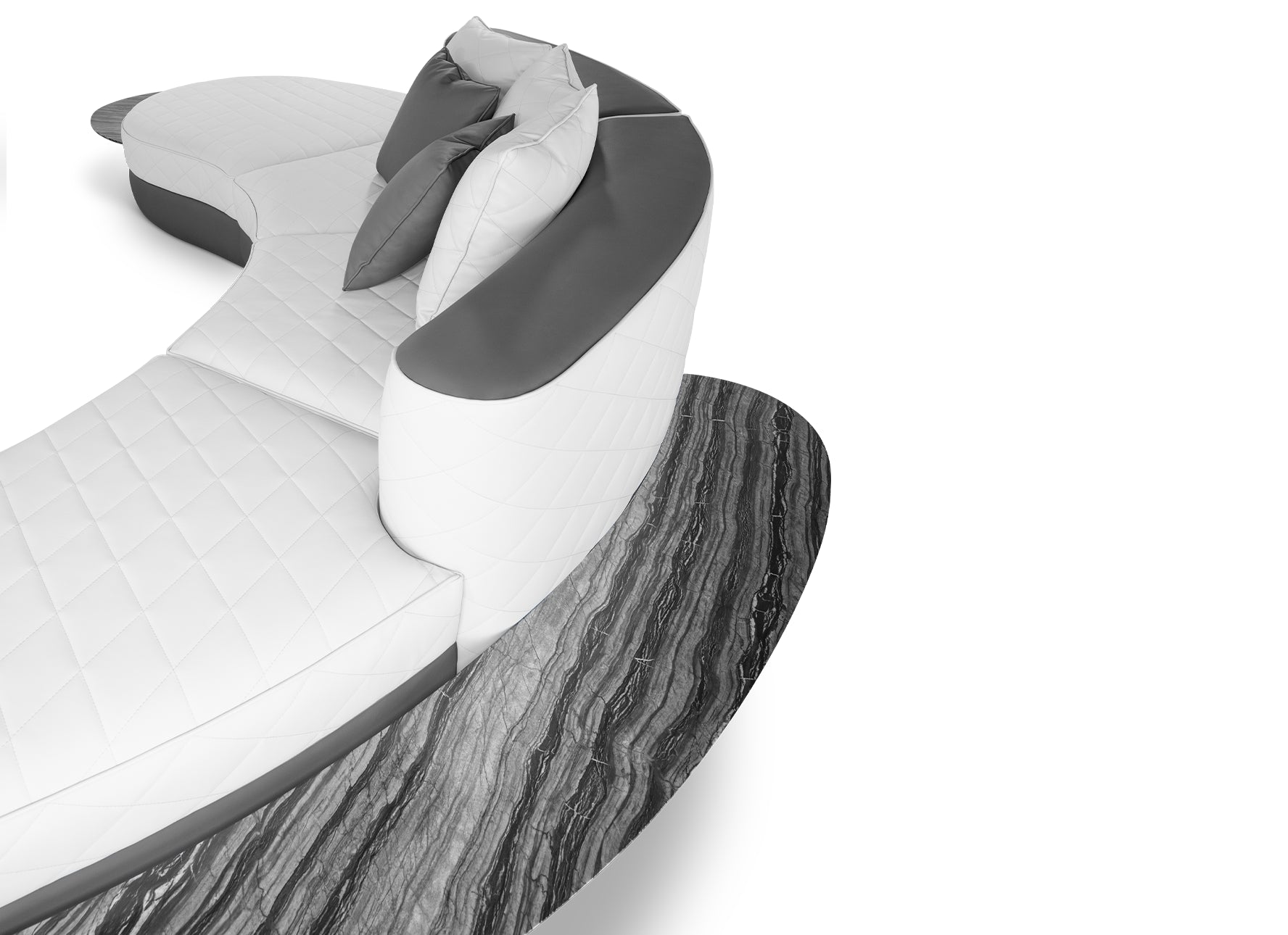 Body: Grey Ash Leather, Grey White Leather, Gold Plated Stainless Steel & Kenya Black Marble