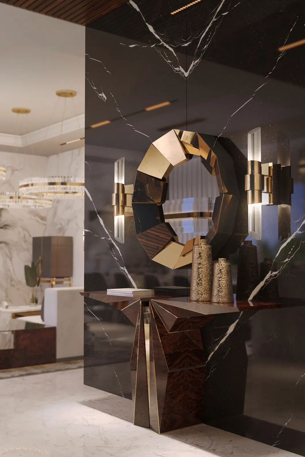 Body: Polished brass, Yellow Triano Marble & Nero marquina marble