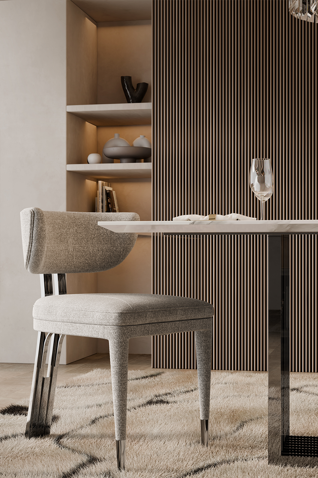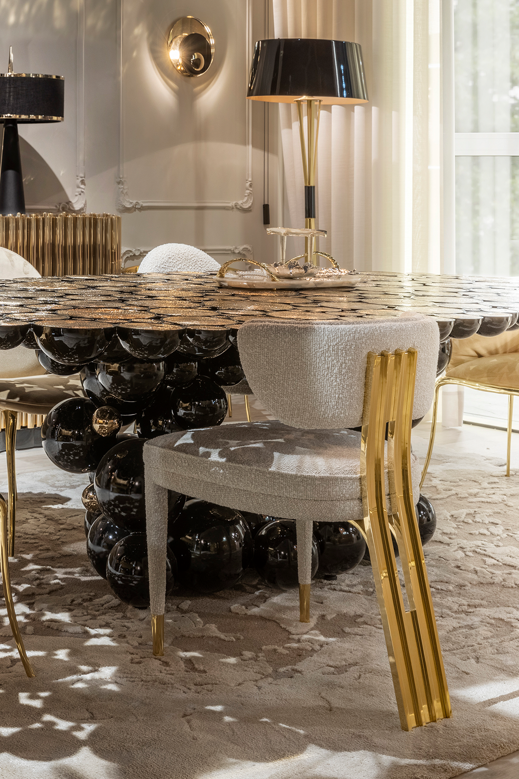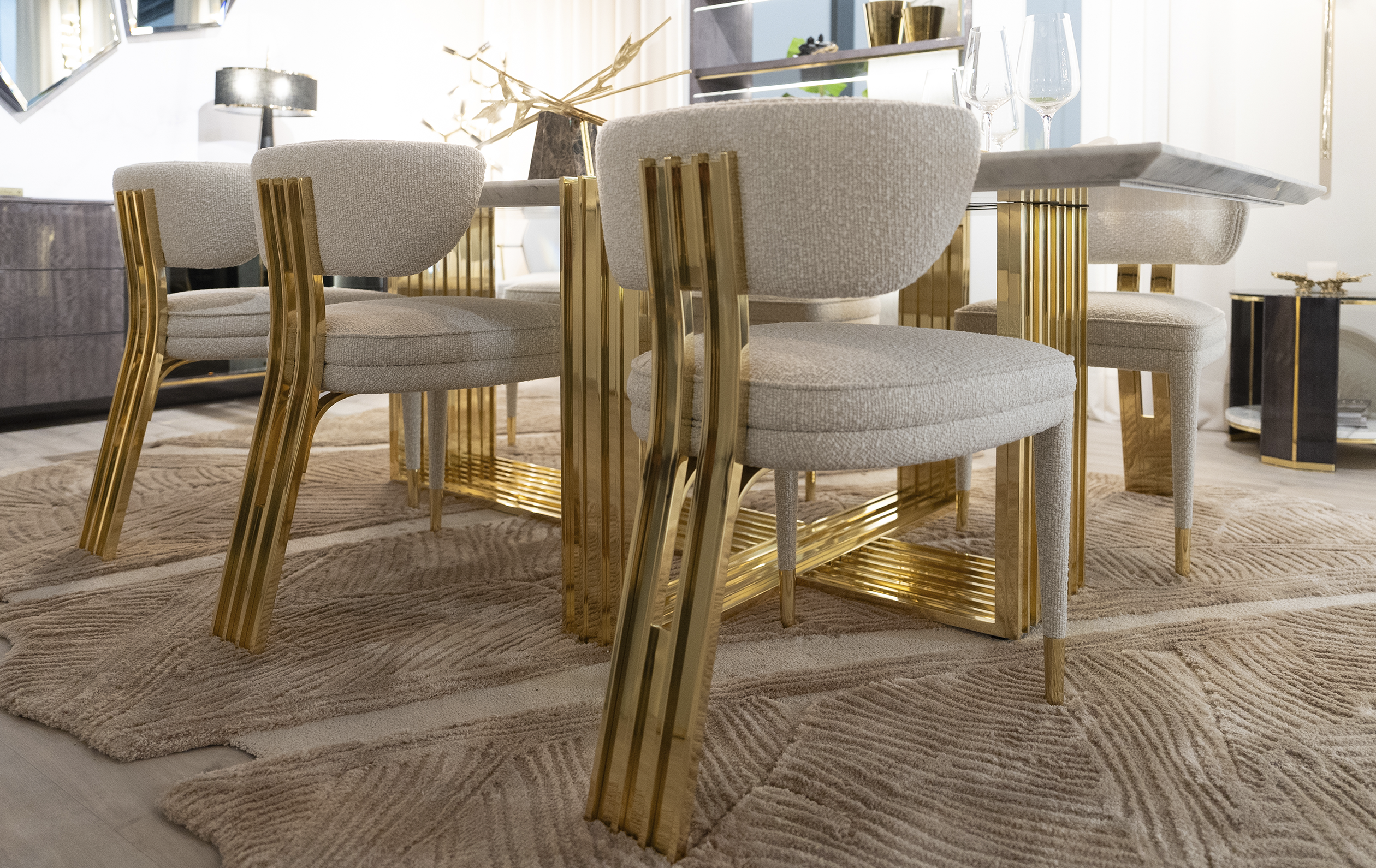 The Talie Dining Chair breathes life into movements like Art Deco and mid-century, reshaping the dining scene with its thought-provoking design. Inspired by the natural architecture of Frank Lloyd Wright, it features accentuated details such as its arched backrest and brass build reminiscent of a forte. Evoking modernity at its finest, the Talie Dining Chair is a testament to progressive design.