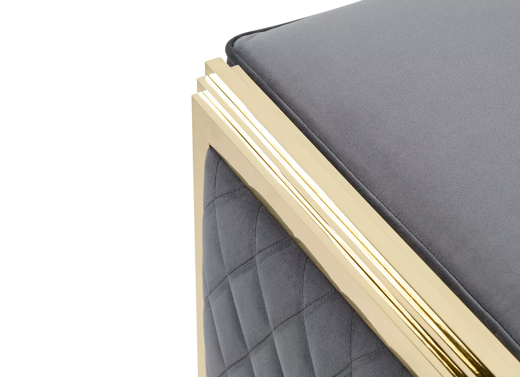 With a smooth and beautiful shape, the Tenor Bench has a highly stylish design. This upholstered beauty, made with grey velvet and polished brass legs, will add an appealing presence to any room, hotel suite, or master bedroom.