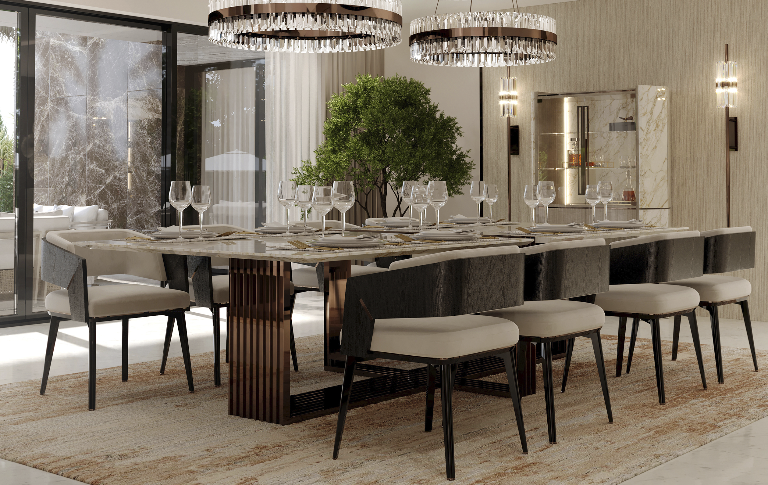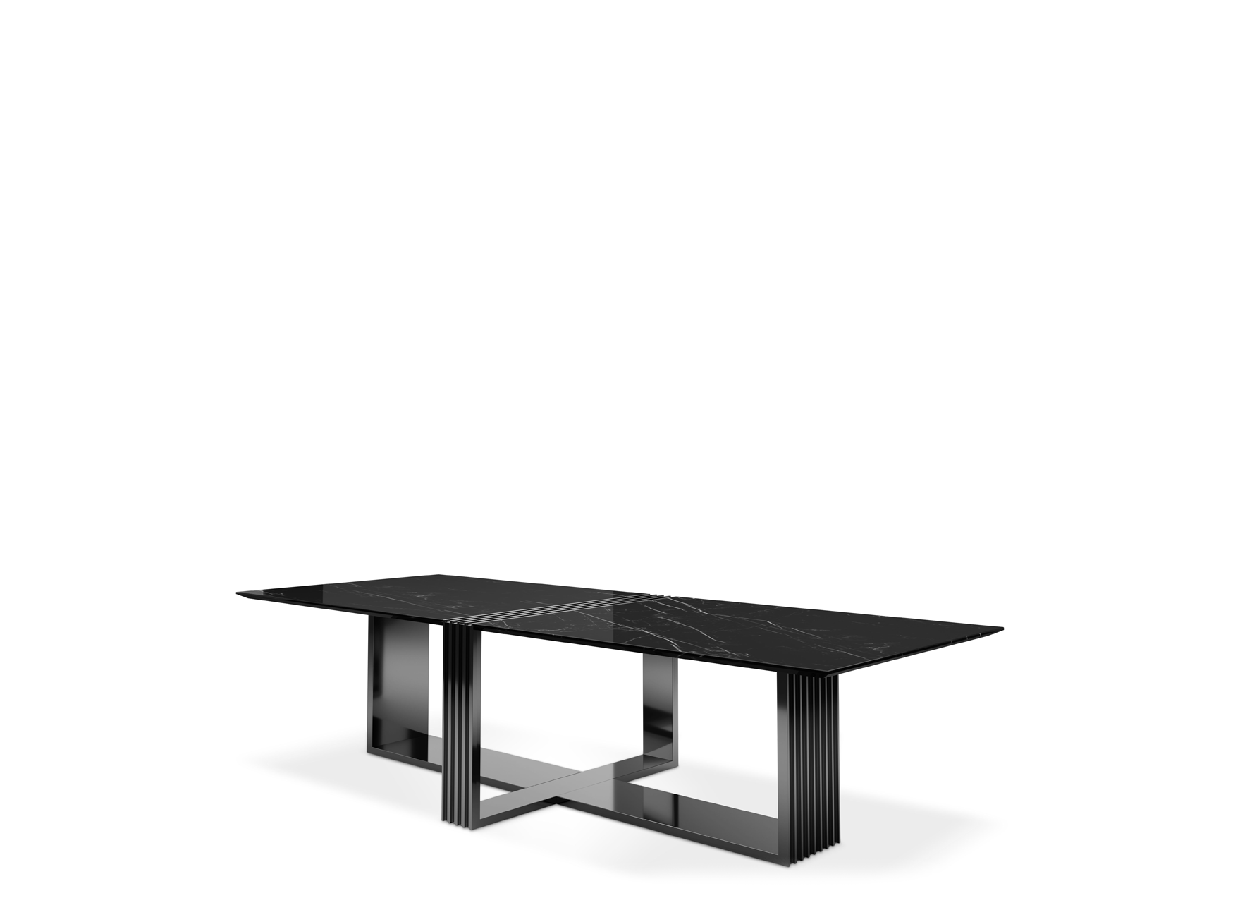 The Vertigo Dining Table XL is an impressive furniture piece with a sublime shape, representing the ultimate in design. Made with high-end materials such as polished brass and Carrara marble, this table creates a unique and sophisticated environment in any dining room setting.